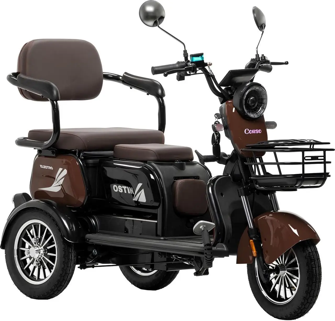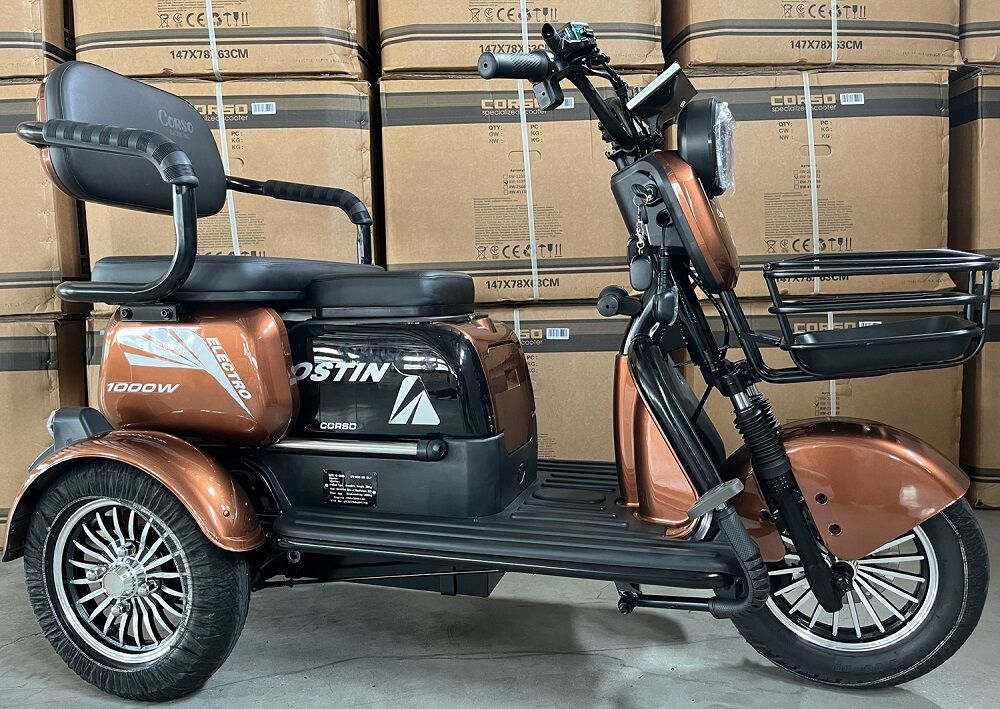 Трицикл Corso «OSTIN» SN-947743, двигун 1000W, акумулятор 72V 23Ah графеновий, коричневий + 1 ящик. акум, колеса 10"
