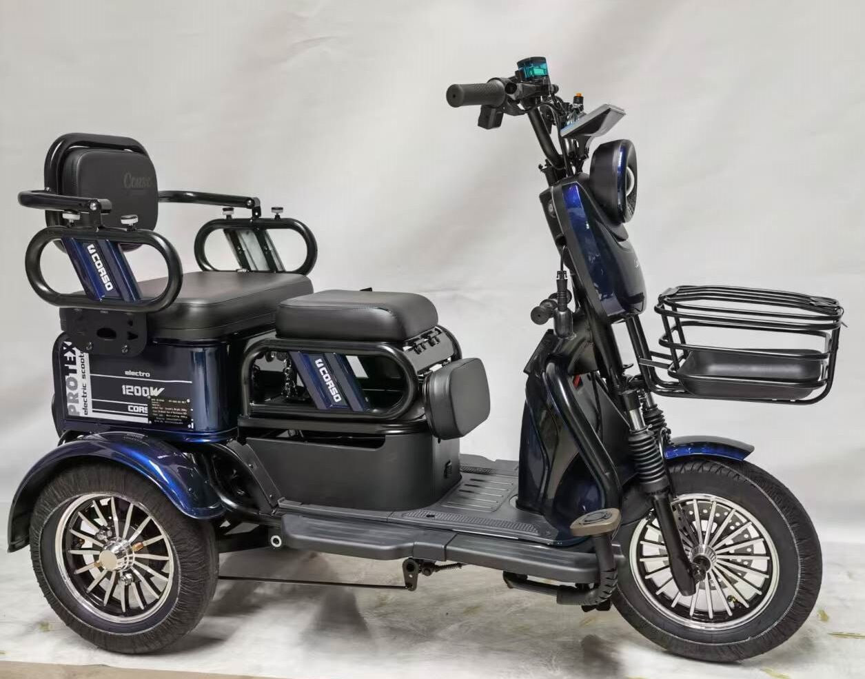 Трицикл Corso «PROTEX» PRX-801623, двигун 1200W, акумулятор 72V 23Ah графеновий, синій + 1 ящик. акум, колеса 10"