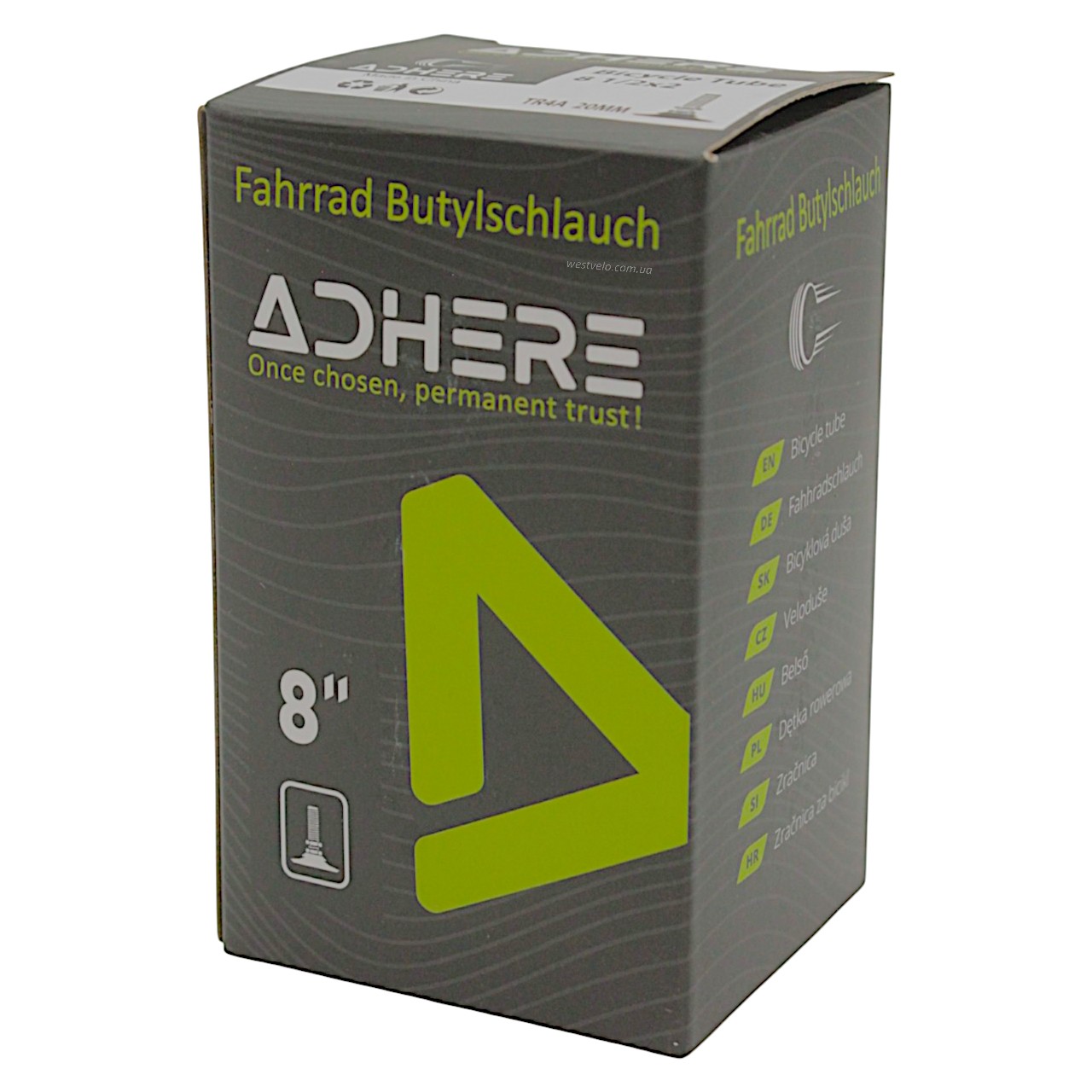Камера 8 прямий ніпель AV 20mm ADHERE широка (внутрішній Ø150 мм) TR4A (8 1/2-2) (на електросамокат)