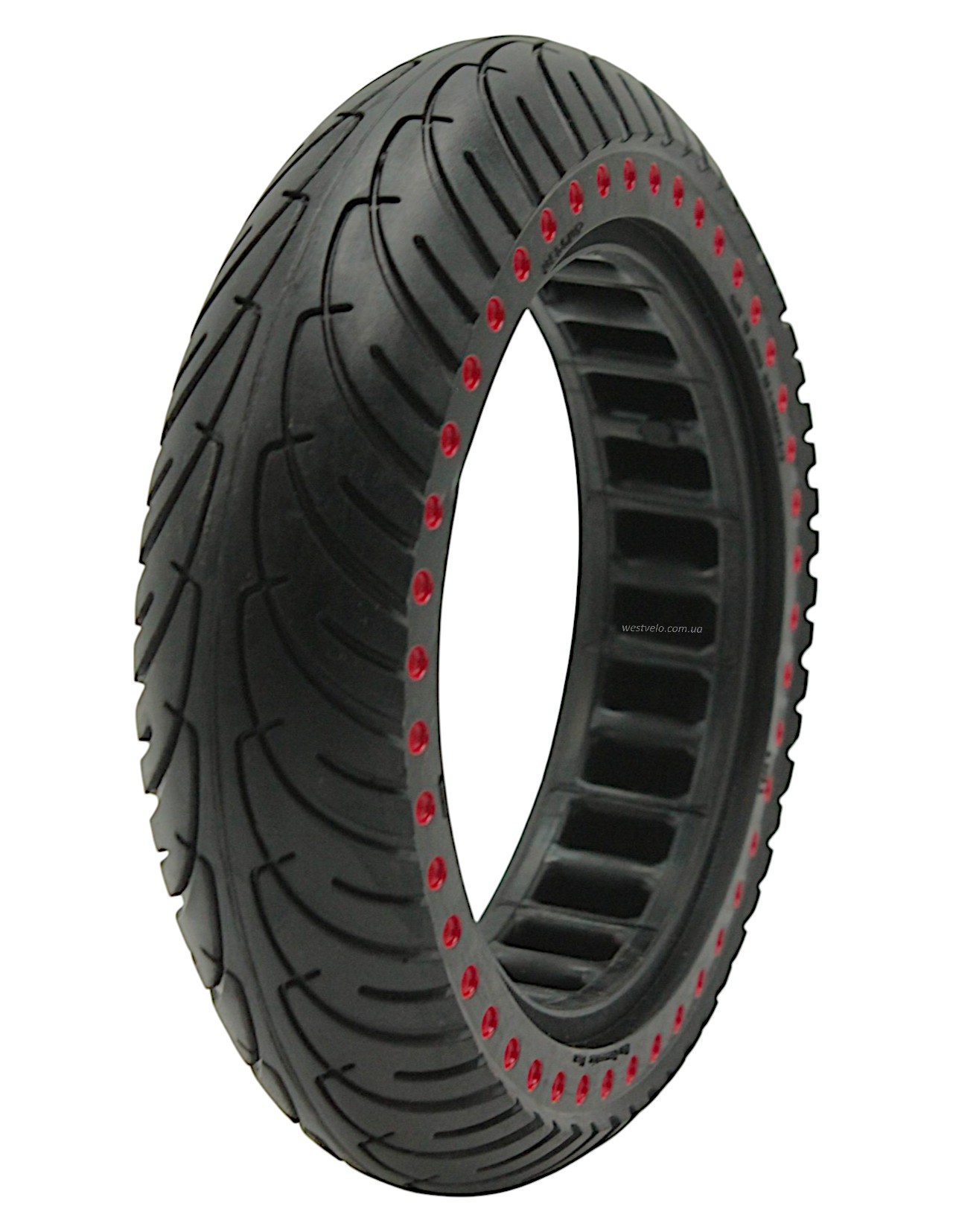 Покришка "8" 8.5-2.0 NEDONG (Ø155 - 36,5мм) лита (Перфорована) безкамерка для електросамоката з червоними крапками (189)