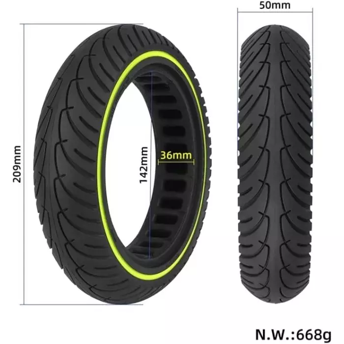 Покришка "8" 8.5-2.0 (Ø142 - 36мм) безкамерка для електросамоката, світловідбивач. салатова смуга