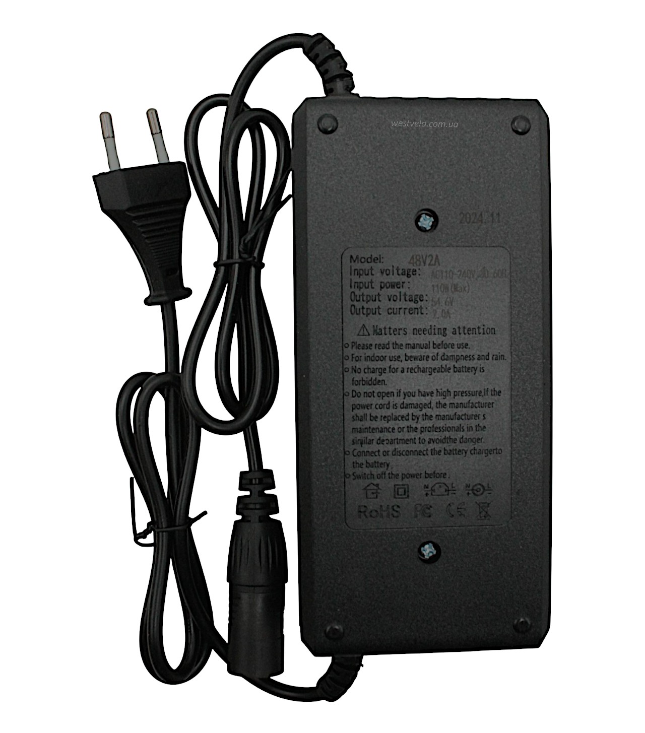 Зарядний пристрій (48V 2Аh) (93460), для Li-ion акумуляторів, для електровелосипеда