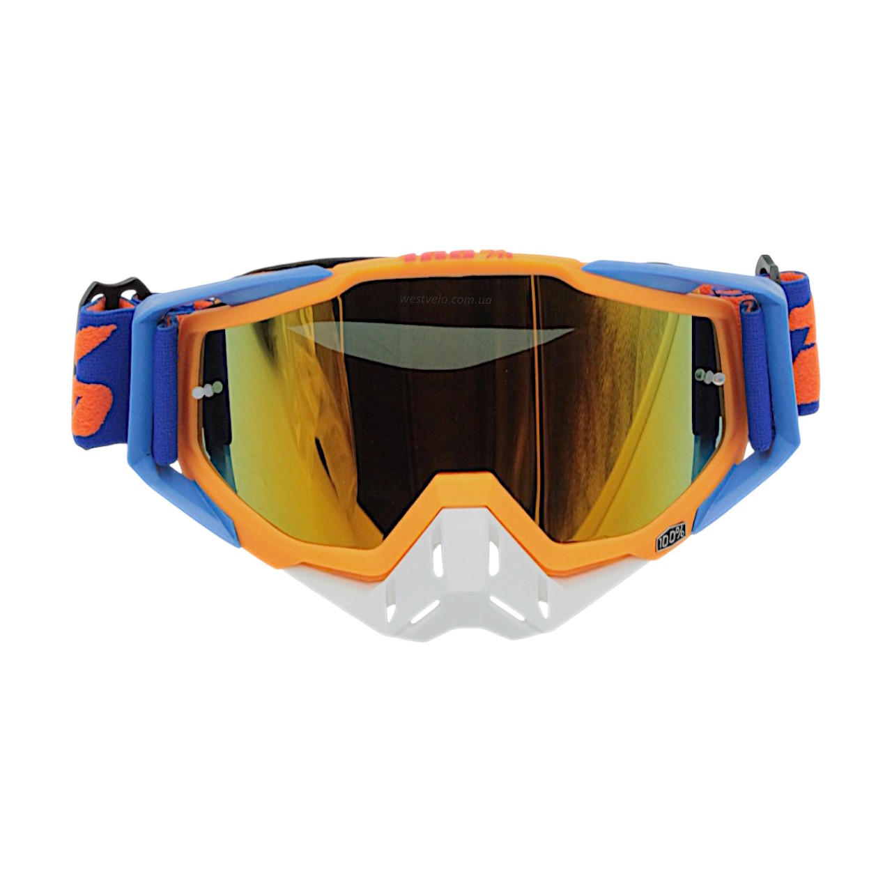 Мото окуляри Кросс-ендуро 100% 109-1-2, синьо-помаранчеві, дзеркальний візор (class B)