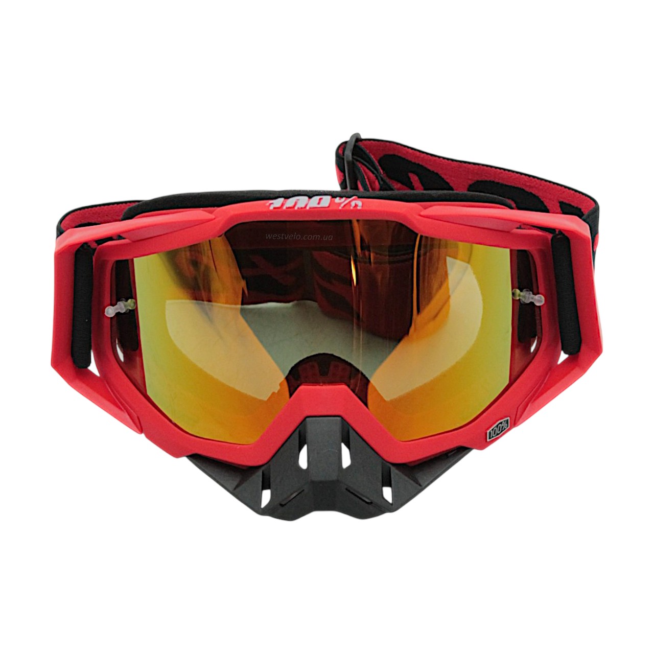 Мото окуляри Кросс-ендуро 100% 109-1-5, червоно-чорні, дзеркальний візор (class B)