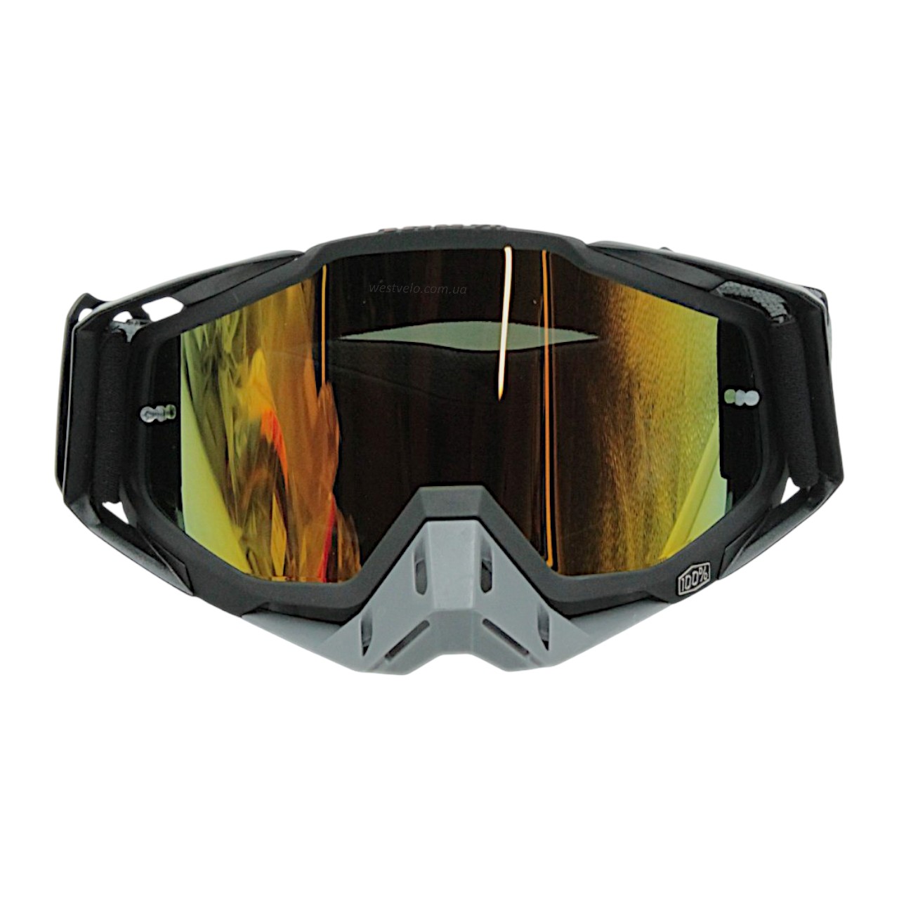 Мото окуляри Кросс-ендуро 100% 109-1-96, чорно-сірі, дзеркальний візор (class B)