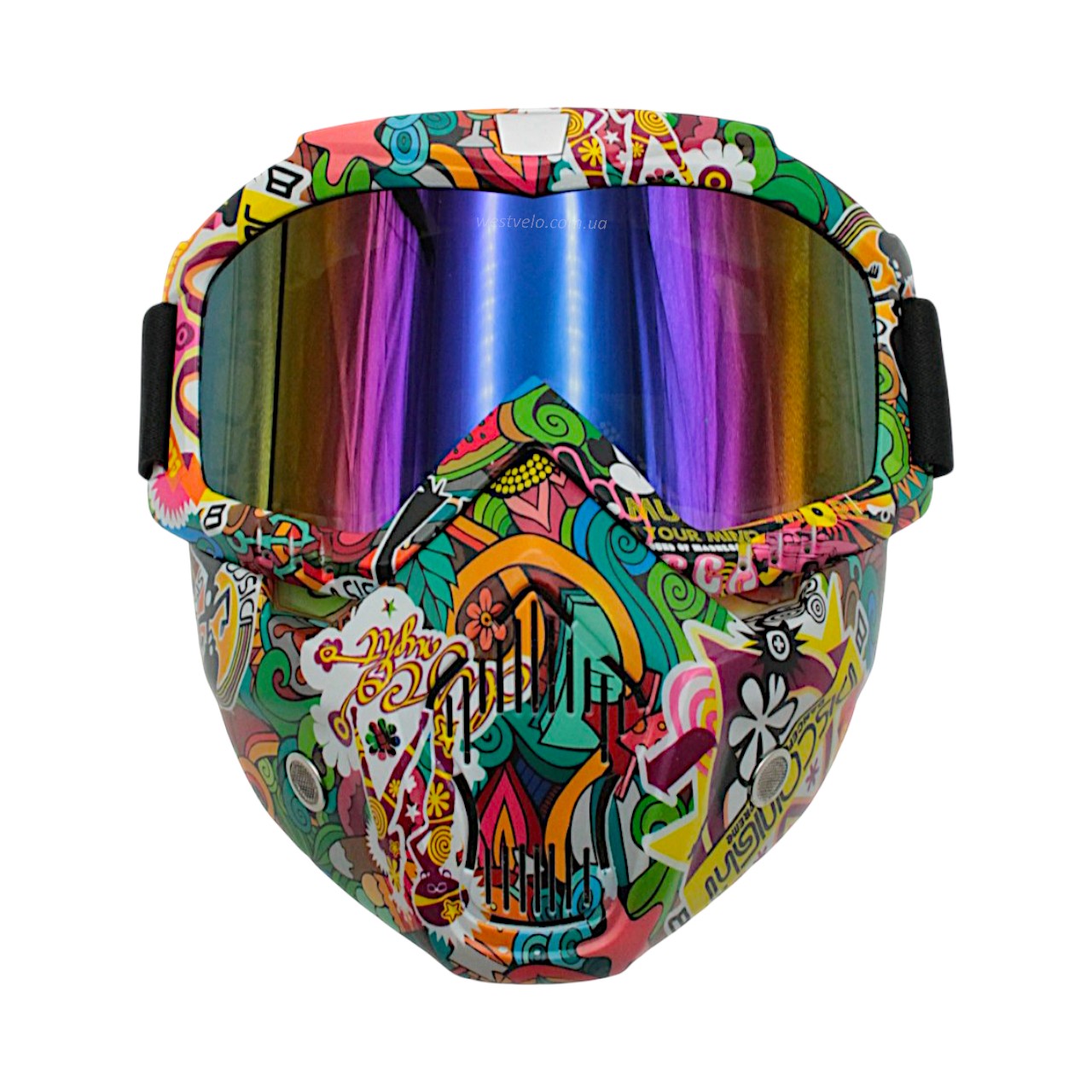 Мото окуляри Кросс-ендуро (хамелеон) BEON + захисна маска (чорно-червоне листя)