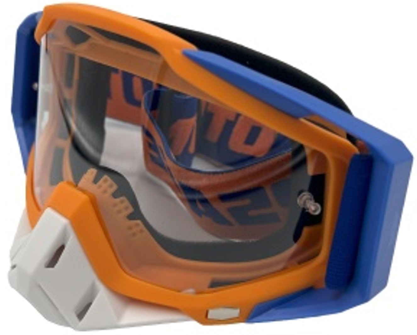 Мото окуляри Кросс-ендуро "MO-6" синьо-помаранчеві з прозорими лінзами