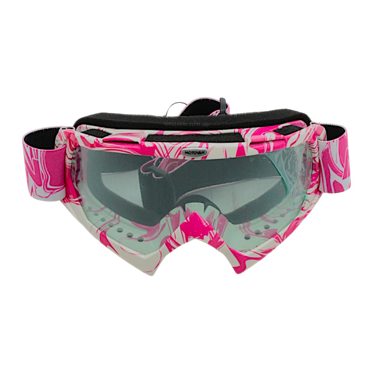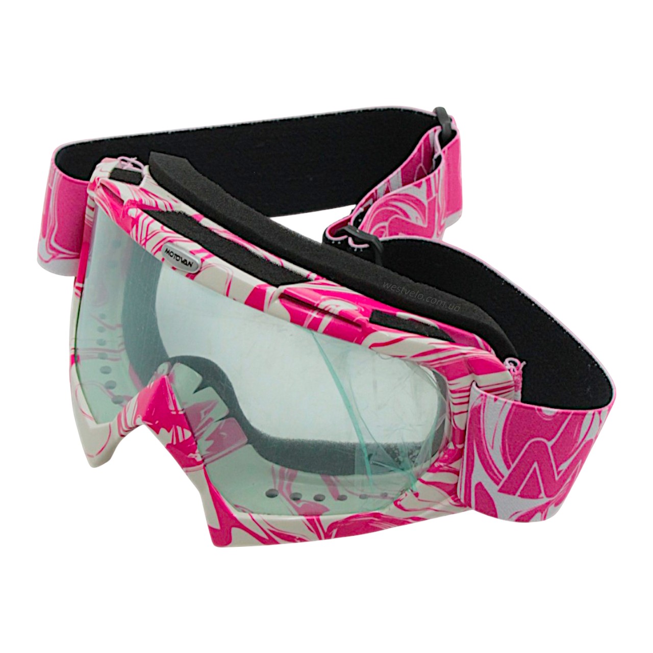 Мото окуляри Кросс-ендуро "MOTOVAN X-490-2" рожево-білі, прозорі