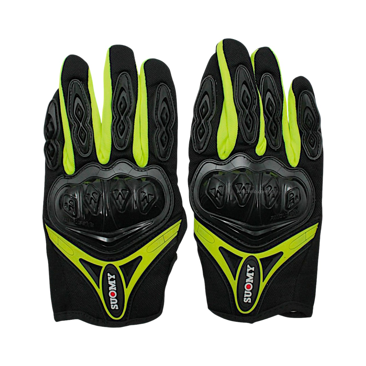 Мото рукавиці (L) "SUOMY" (SU‑10) чорно-зелені (сенсорний палець)