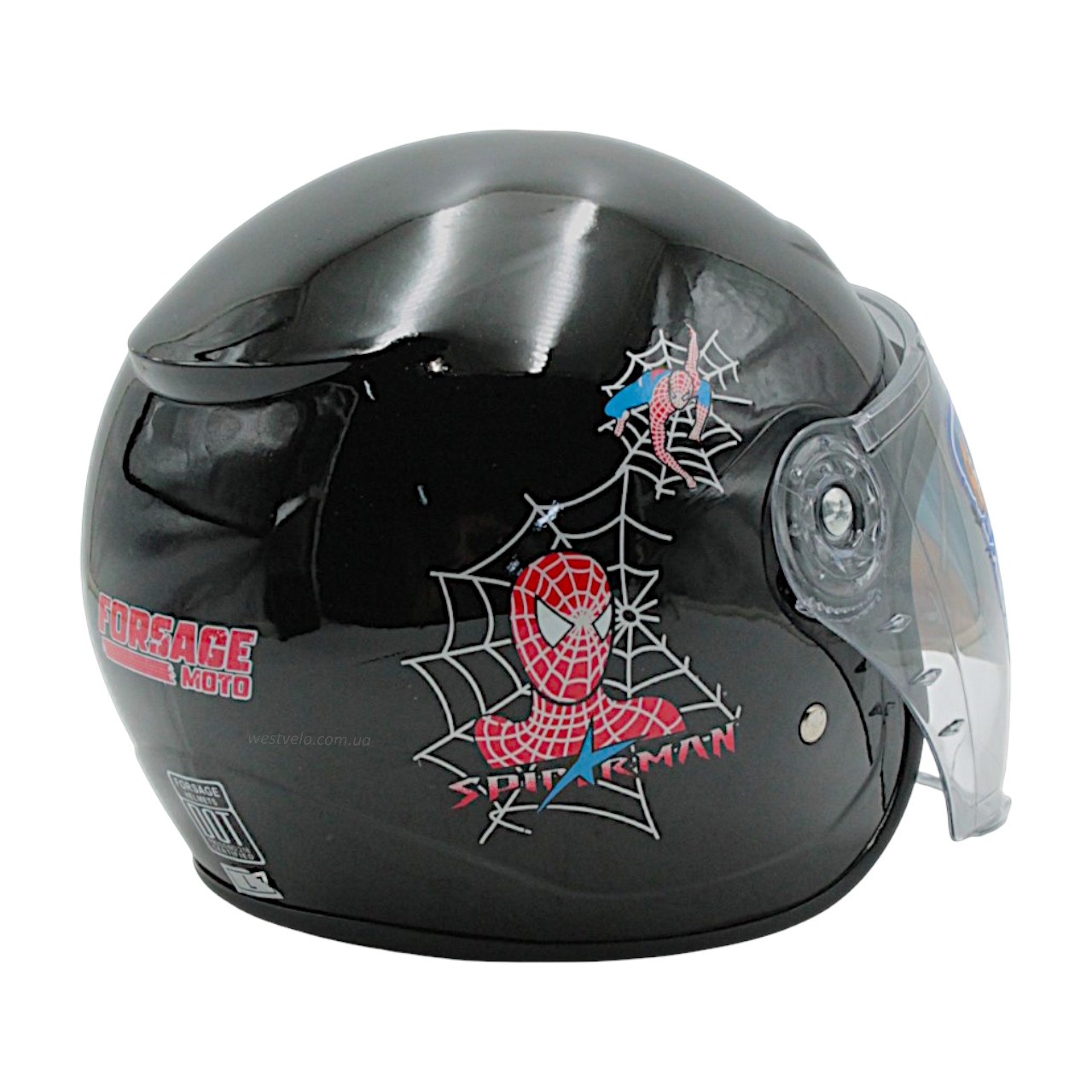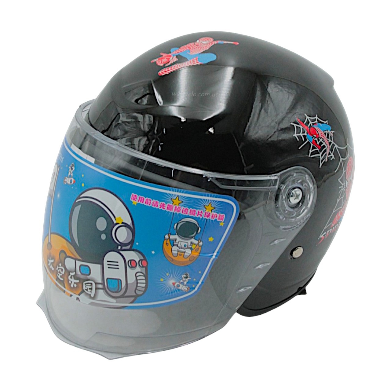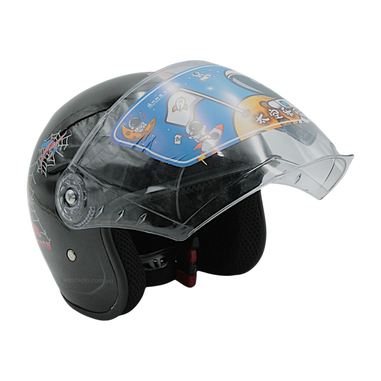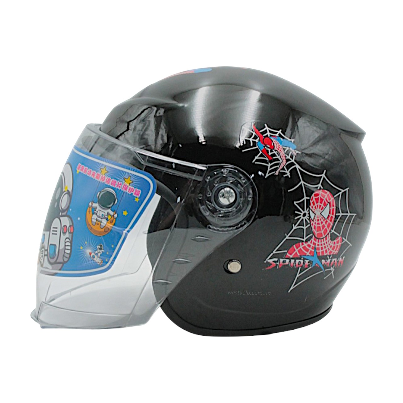 Мото шолом дитячий, відкритий (L) "908", Spider Man, чорний глянцевий