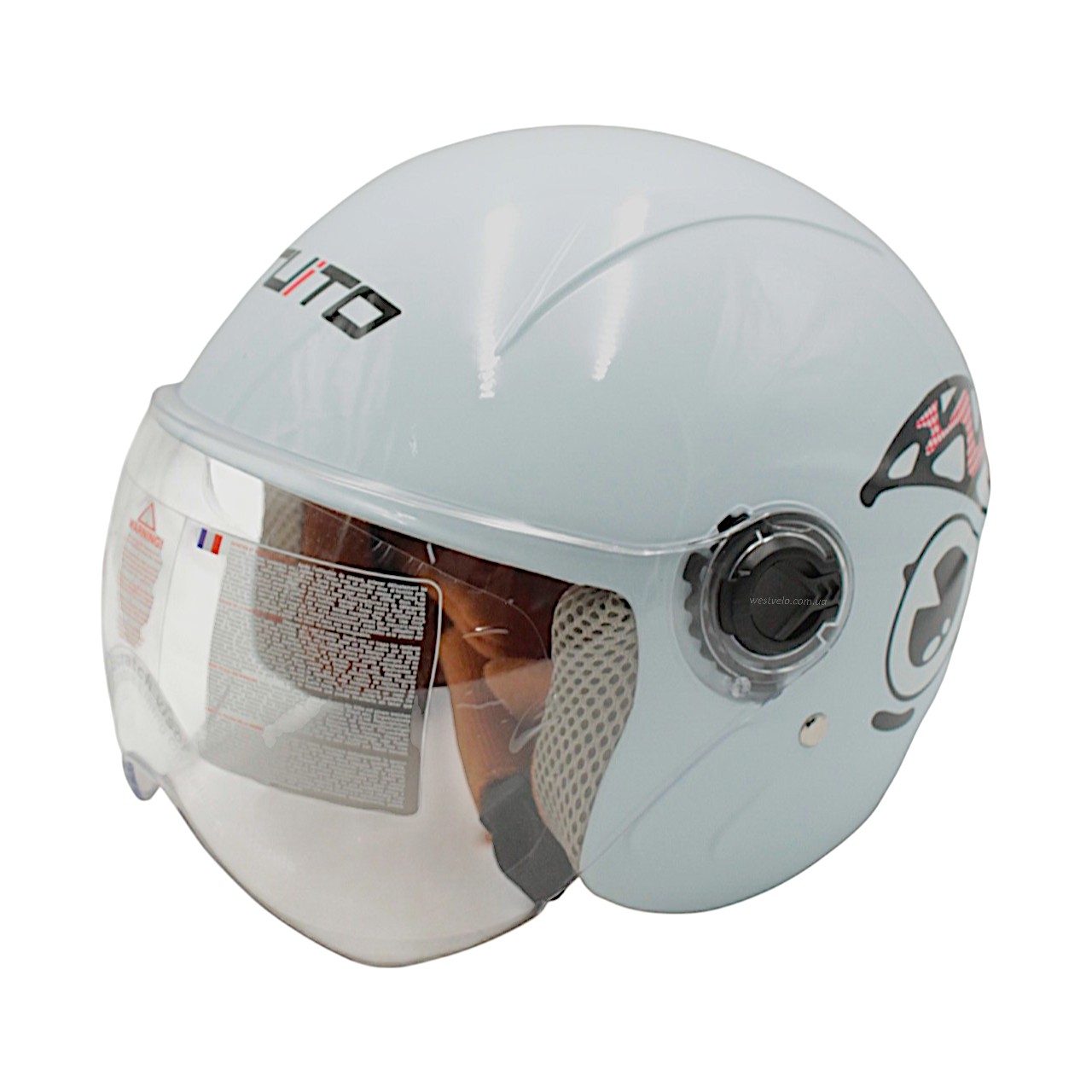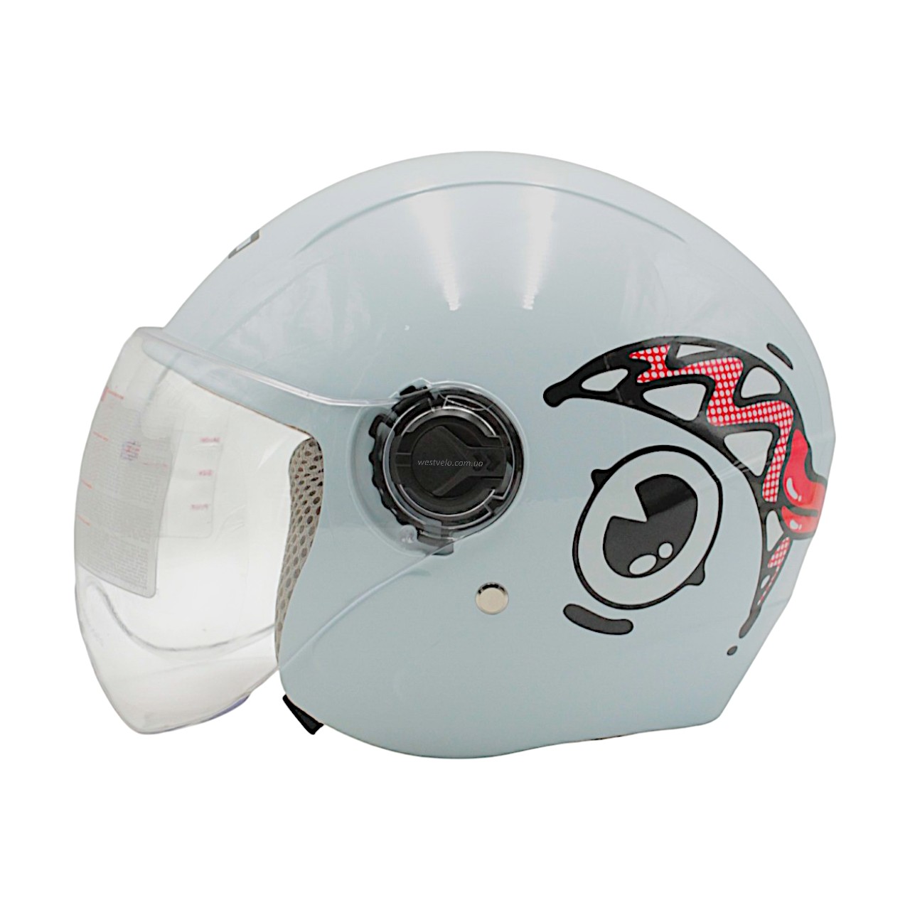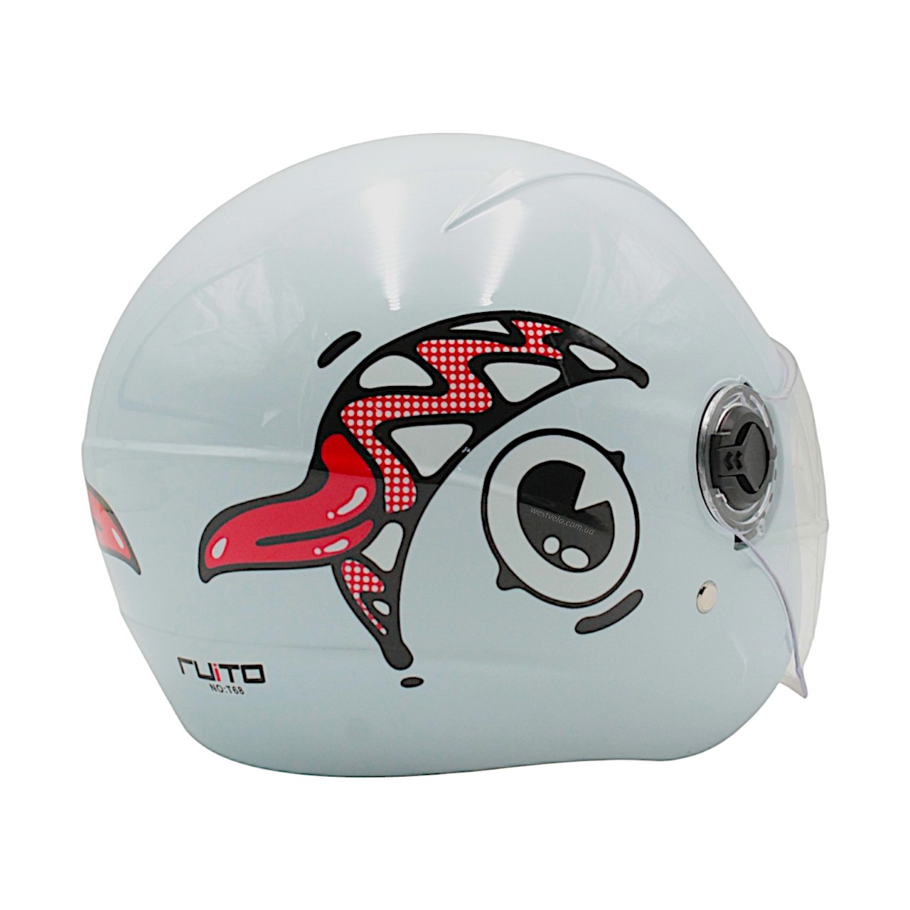 Мото шолом дитячий, відкритий RUITO Т68 білий з червоно-чорним малюнком