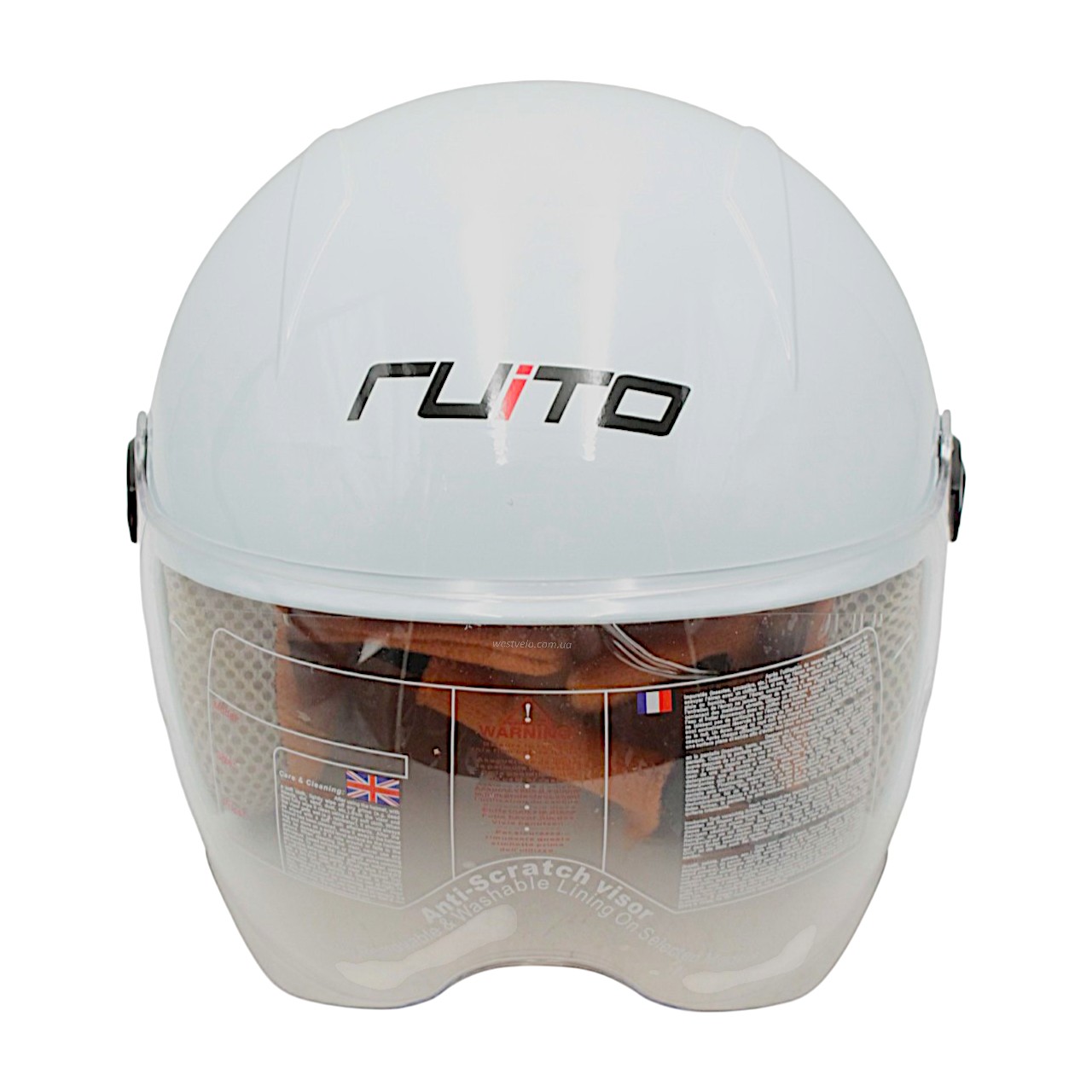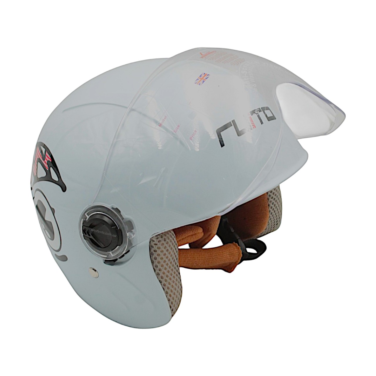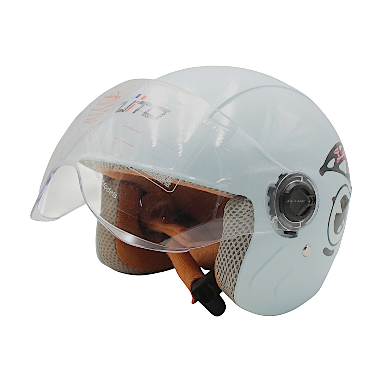 Мото шолом дитячий, відкритий RUITO Т68 білий з червоно-чорним малюнком