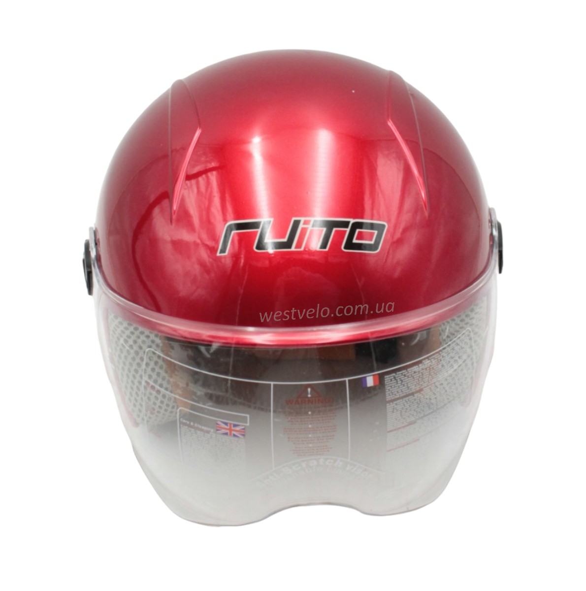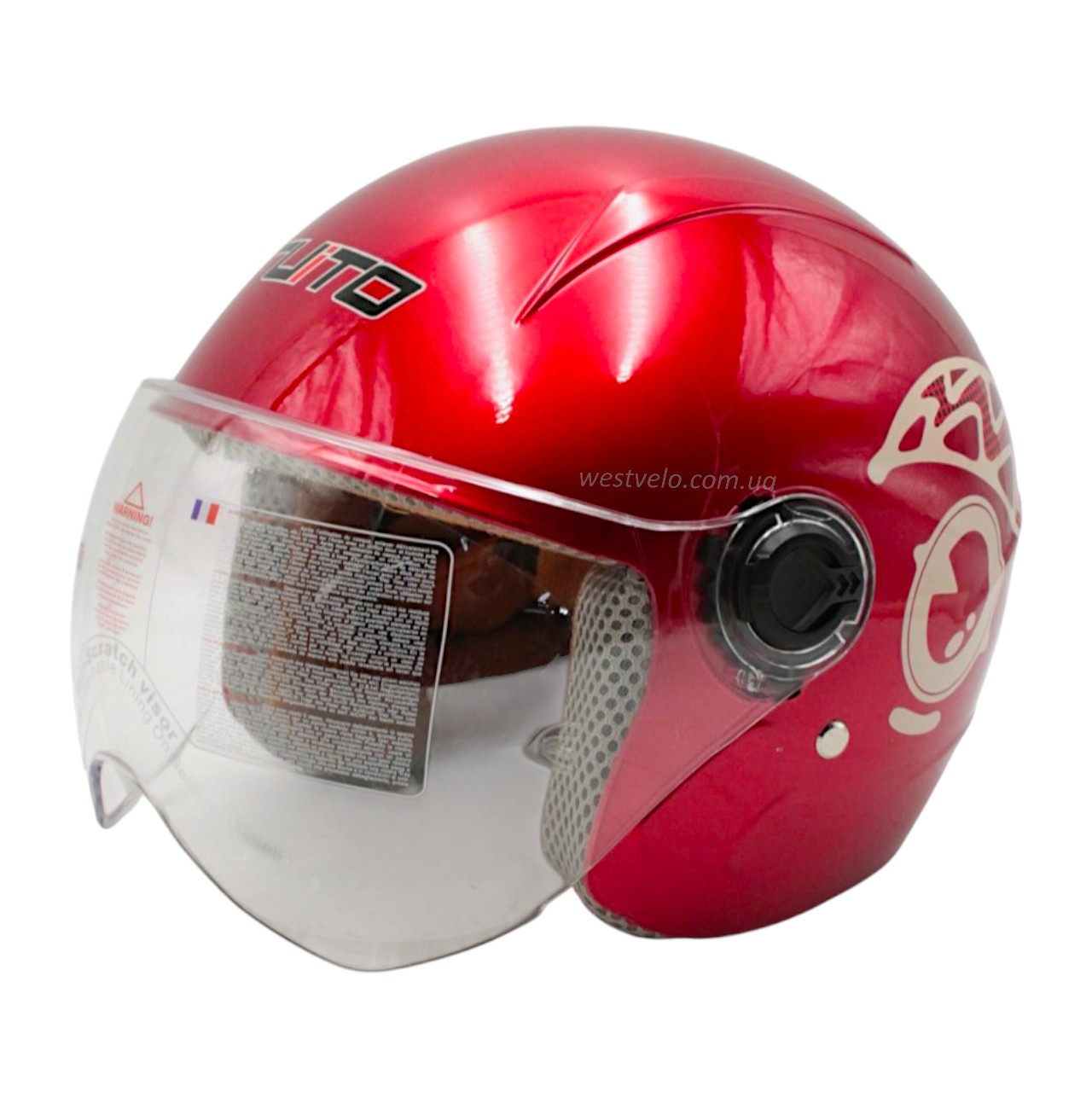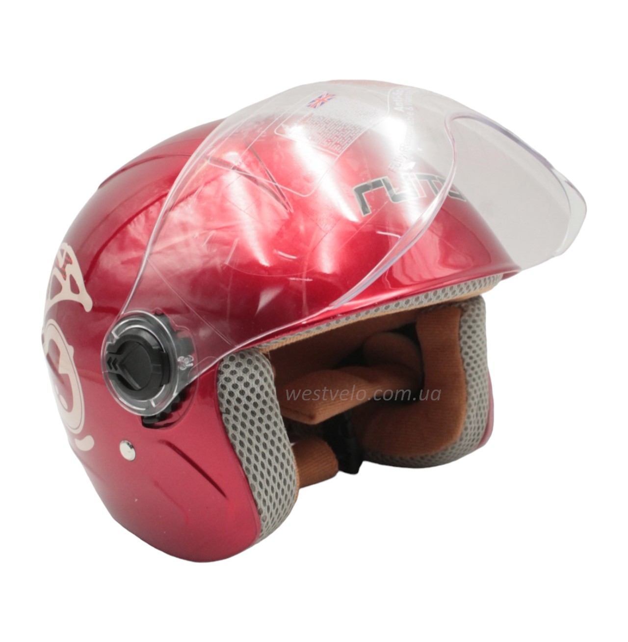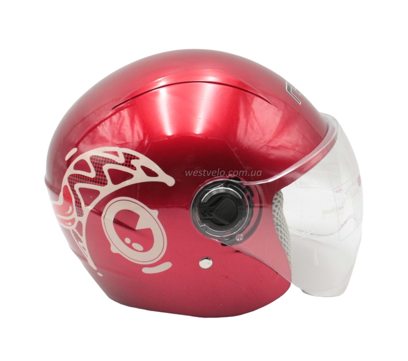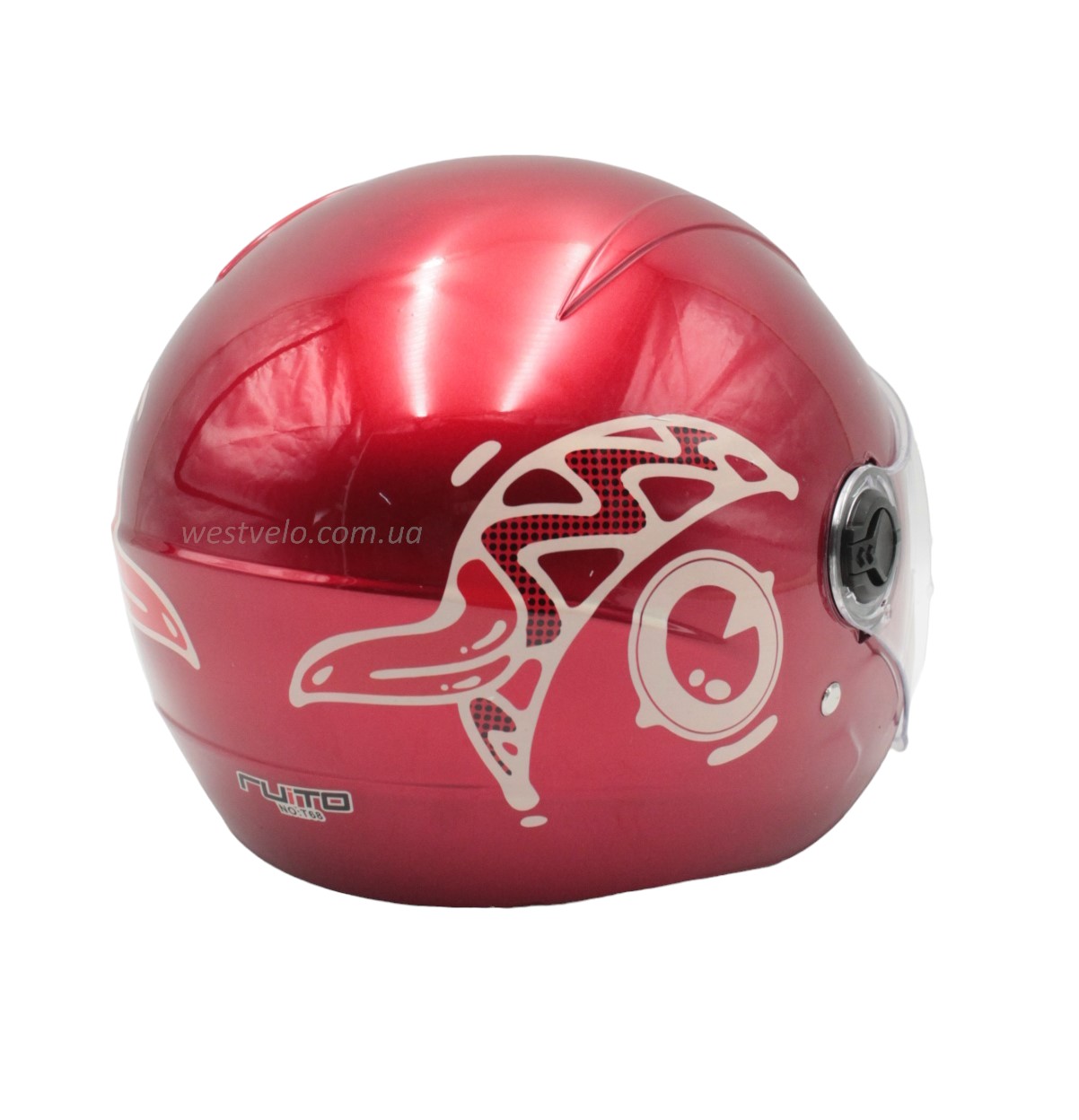 Мото шолом дитячий, відкритий RUITO Т68, червоний з біло-червоним малюнком