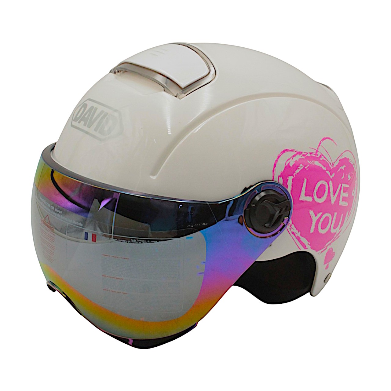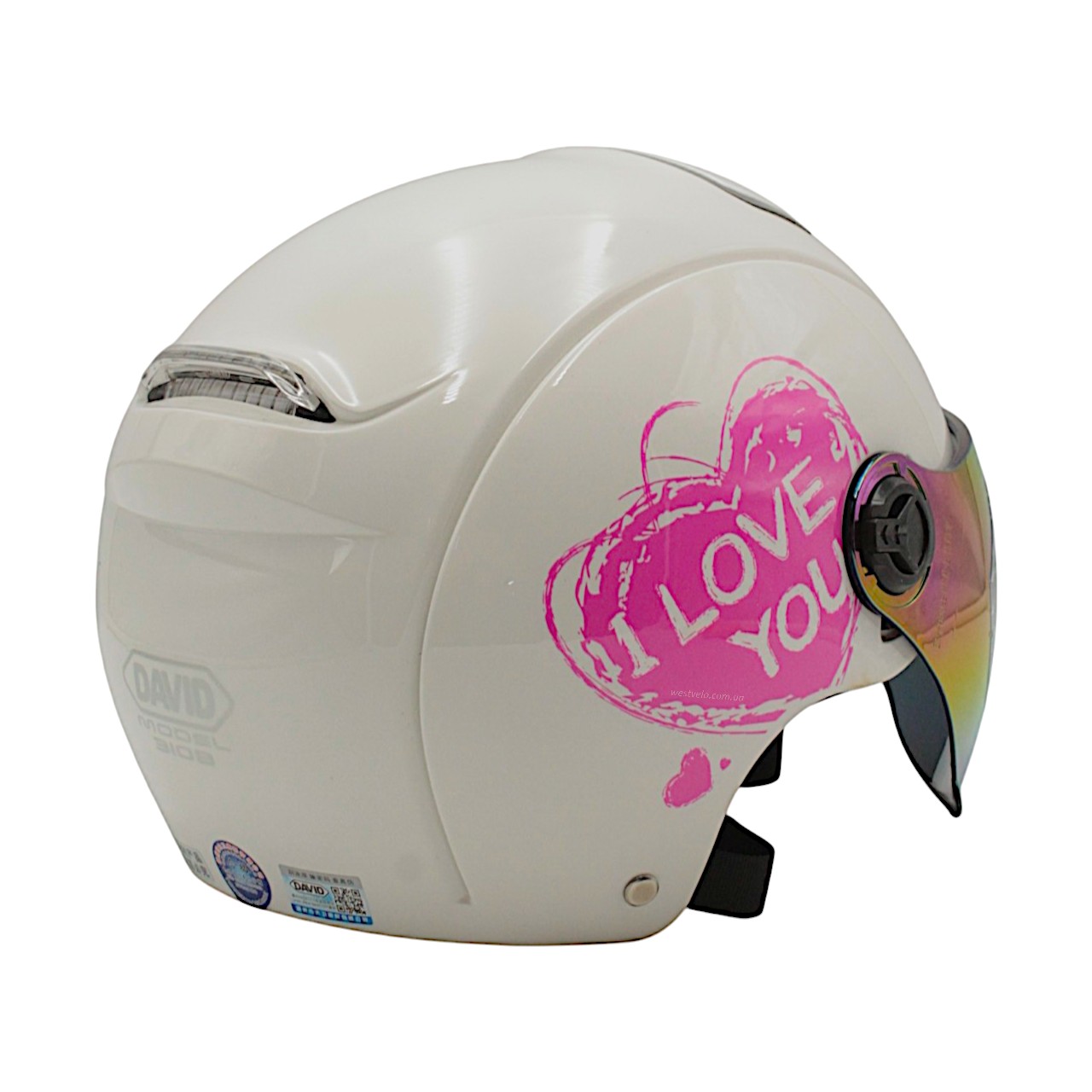 Мото шолом підлітковий, відкритий (M‑XL) DAVID S310B білий (ABS)