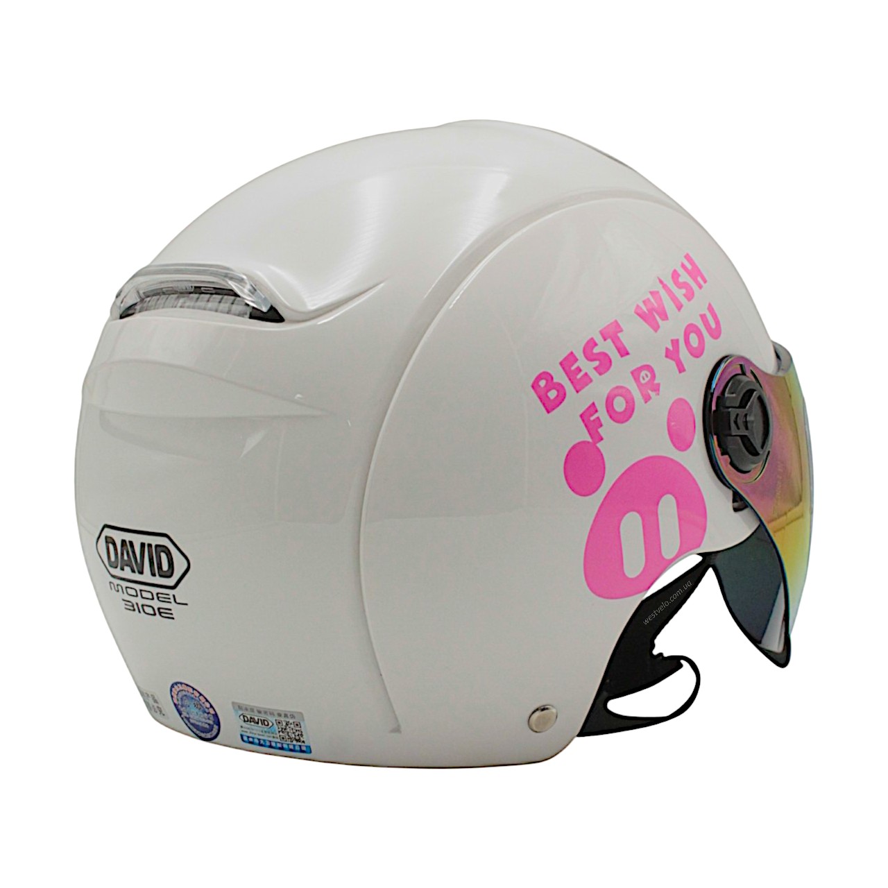 Мото шолом підлітковий, відкритий DAVID S310E регульований розмір. білий