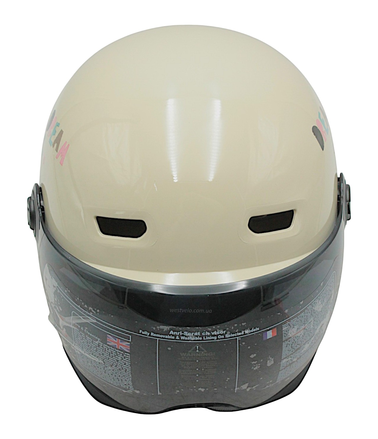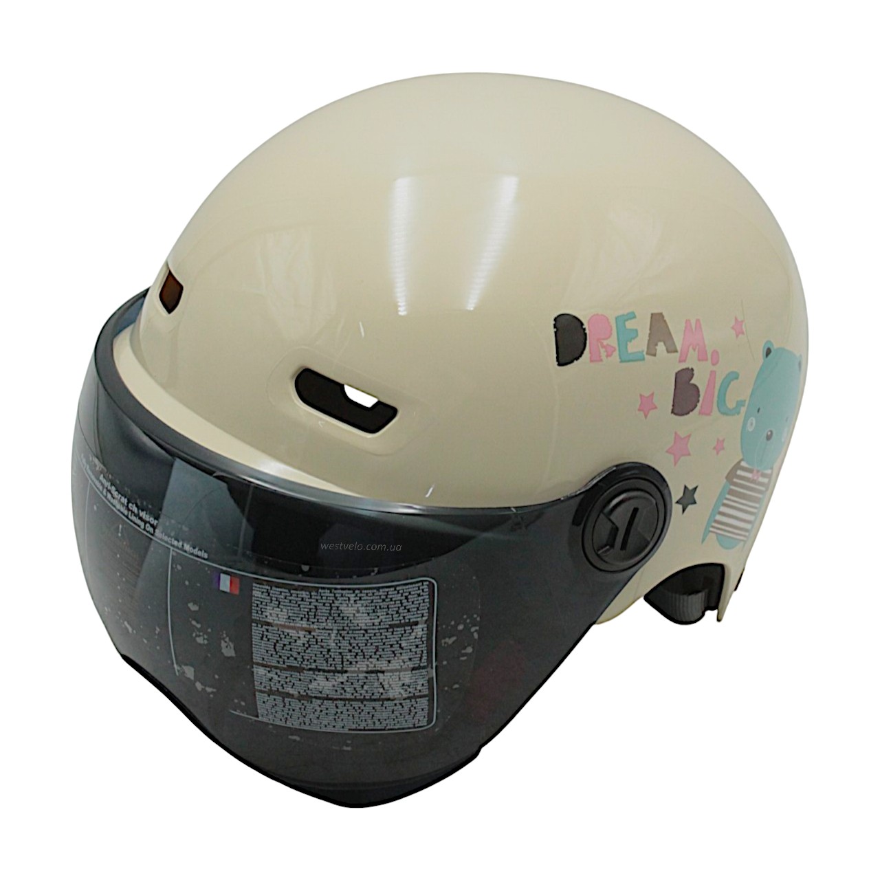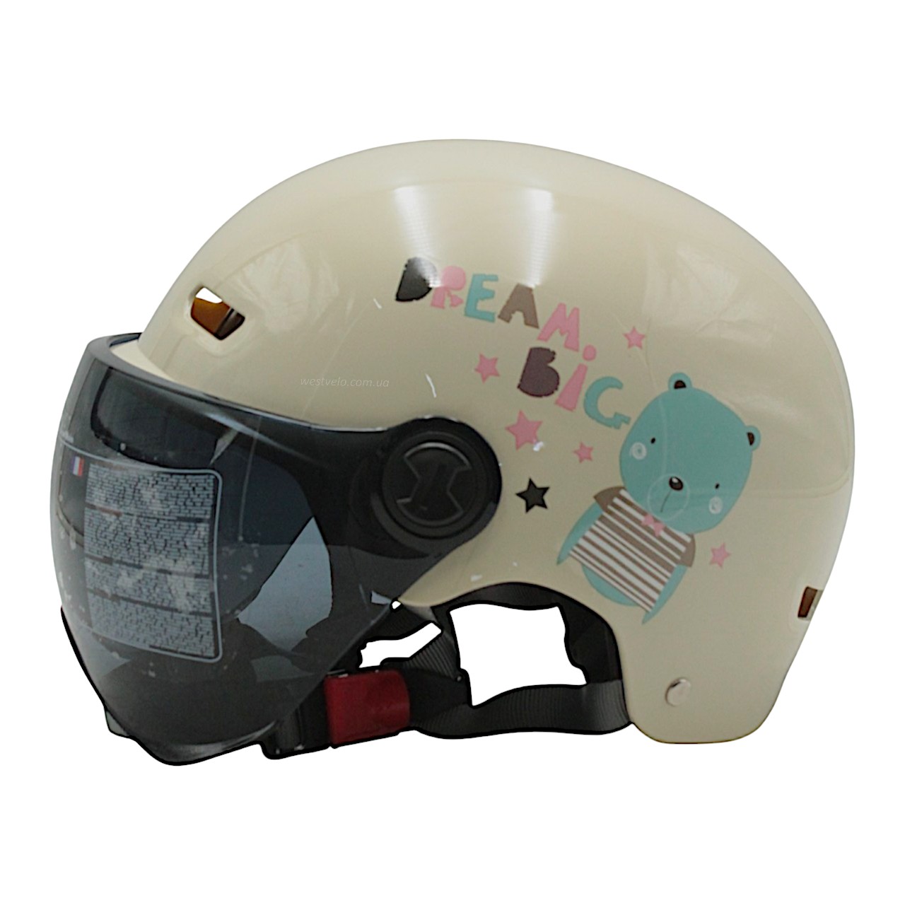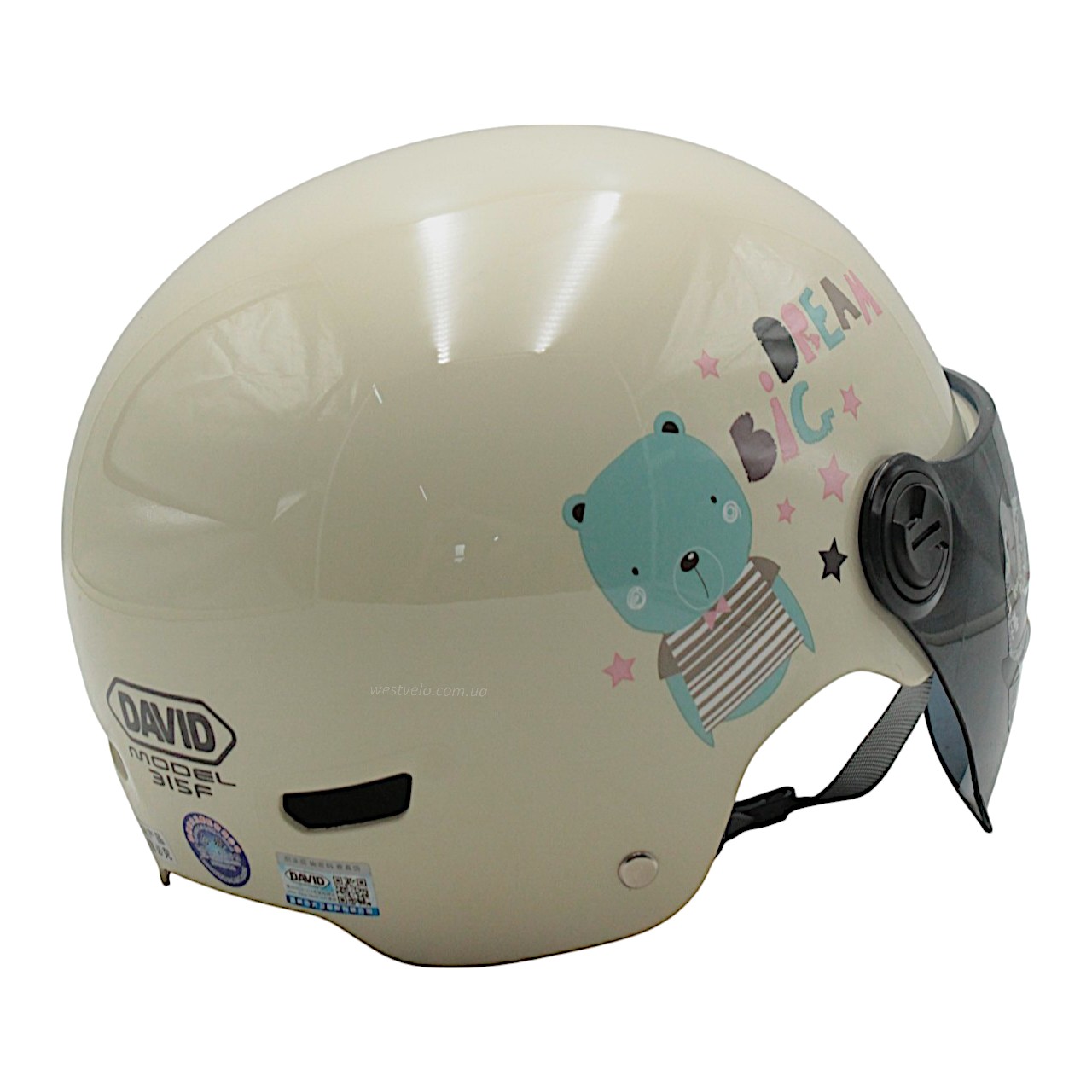 Мото шолом підлітковий, відкритий (M‑XL) "DAVID" 315F‑RICE білий глянцевий (ABS)