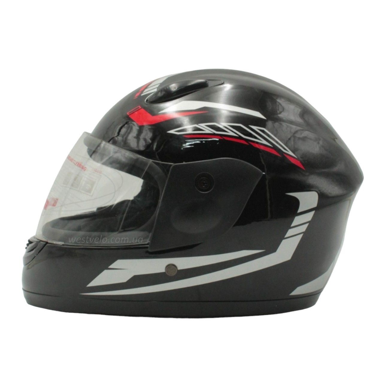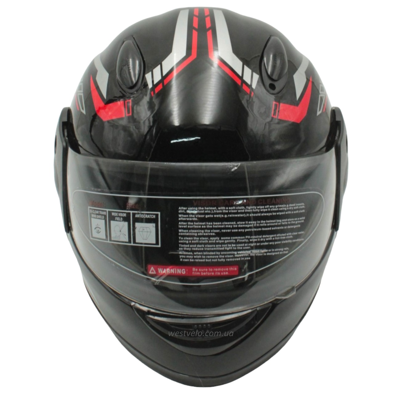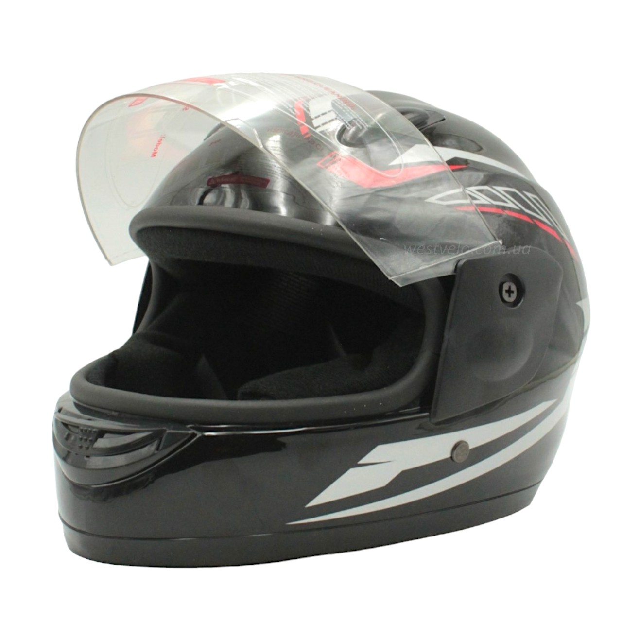 Мото шолом, закритий F2 801 (ХХS45/46), чорно-червоно-сірий, глянцевий