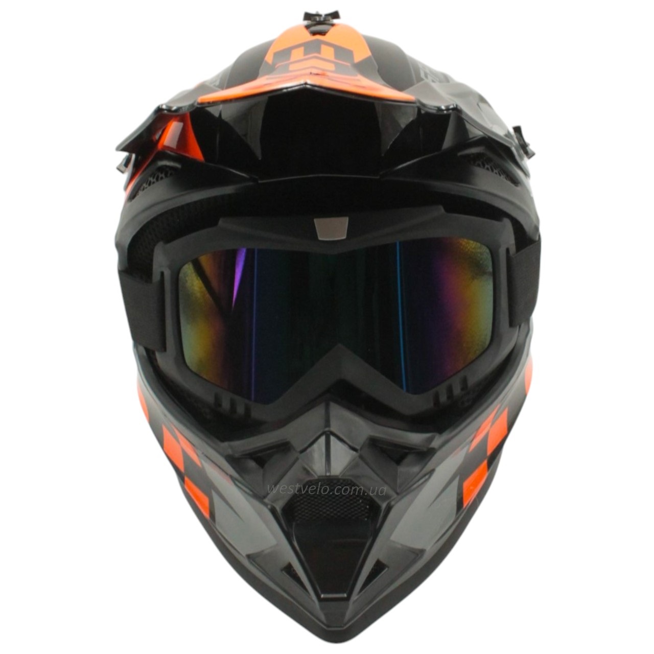 Шолом, закритий крос/ендуро (L) АТV EDX 022 чорно-сіро-помаранчевий глянець з дашком + окуляри