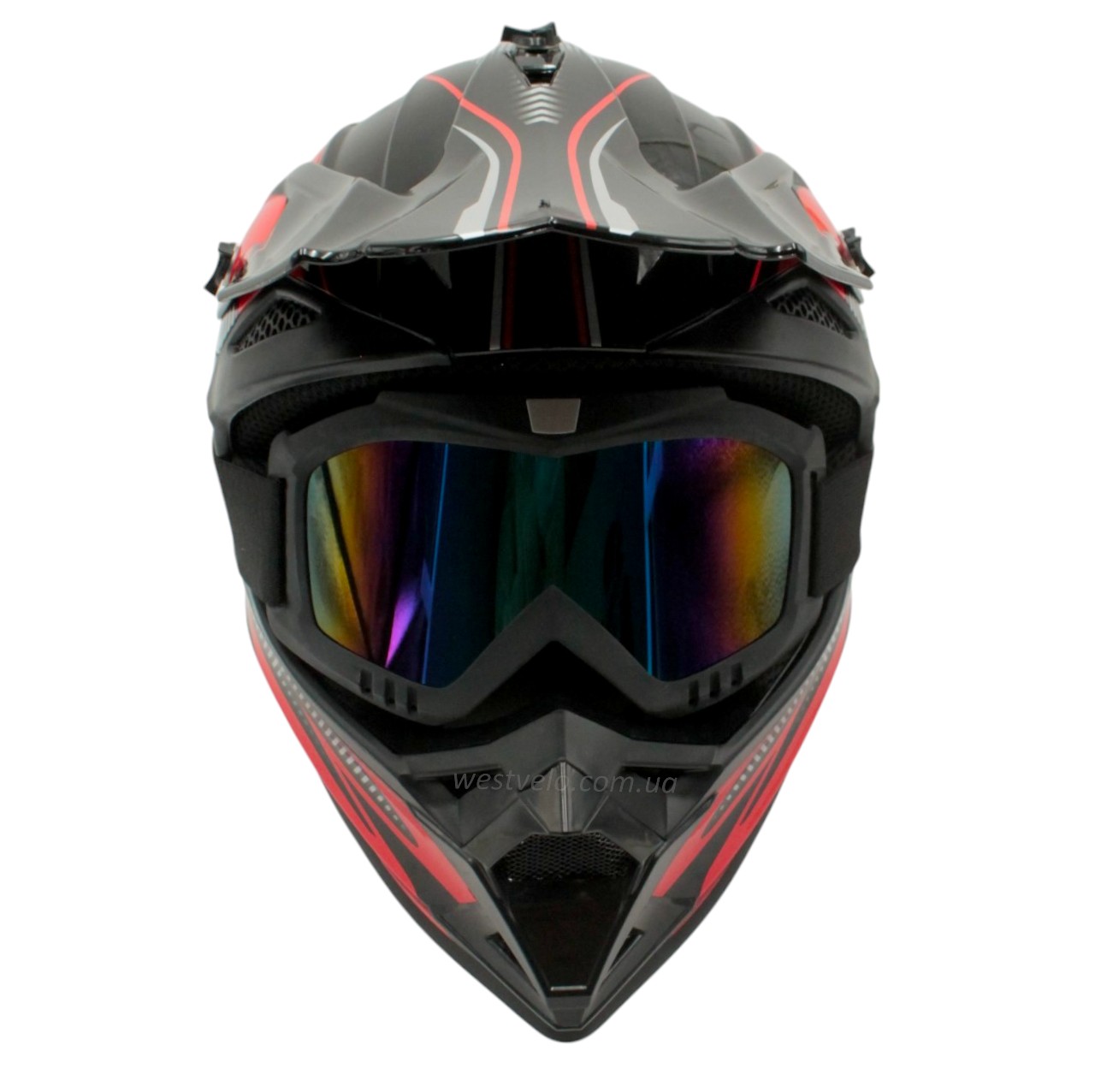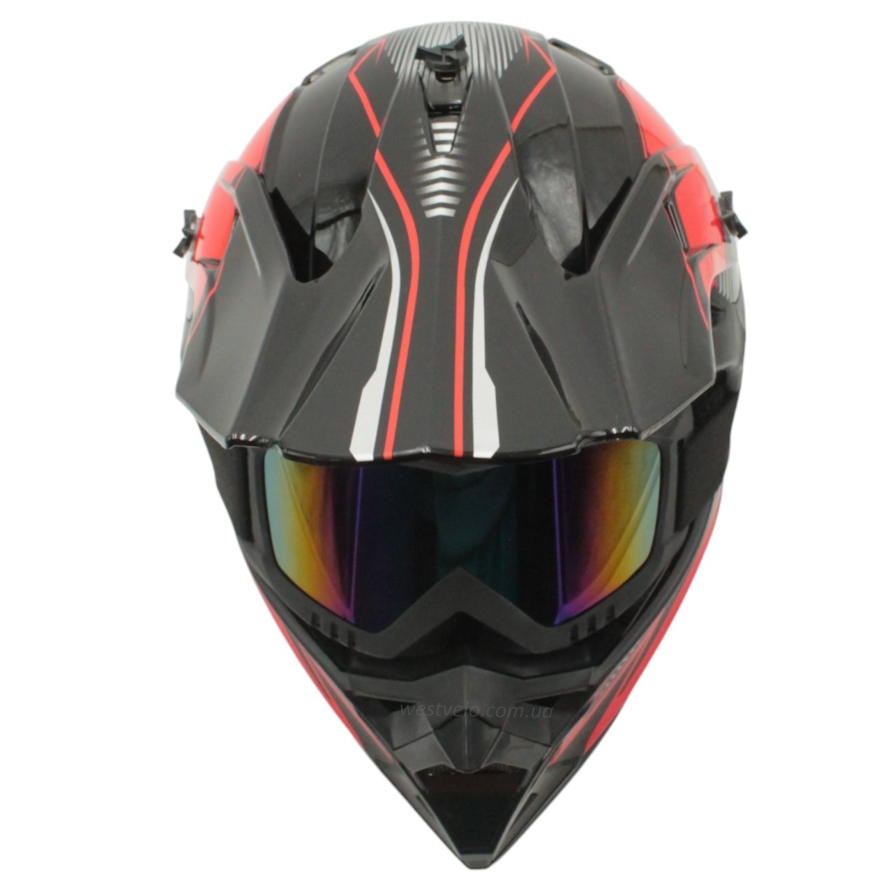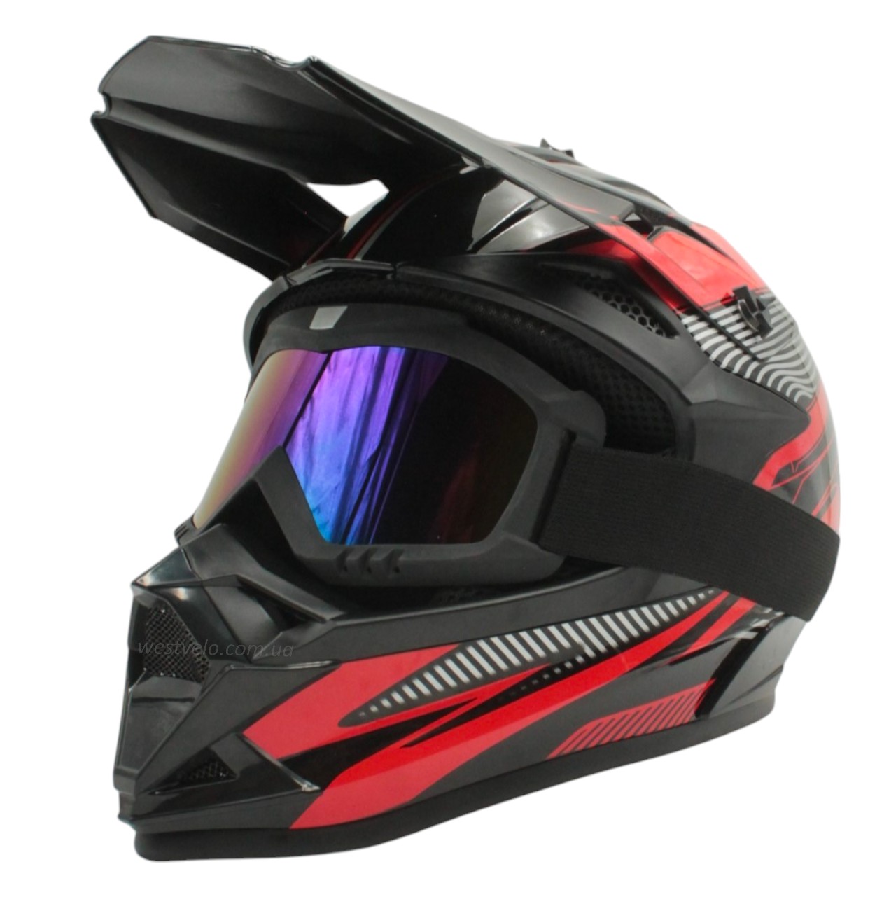 Шолом, закритий крос/ендуро (М) DOT/АТV EDX 023 чорно-червоний глянець з дашком + окуляри