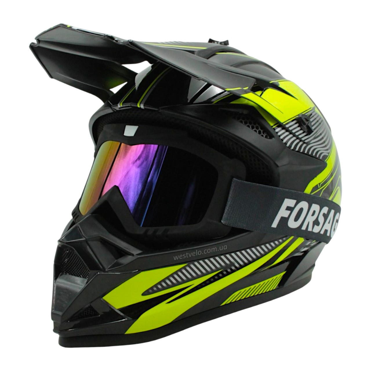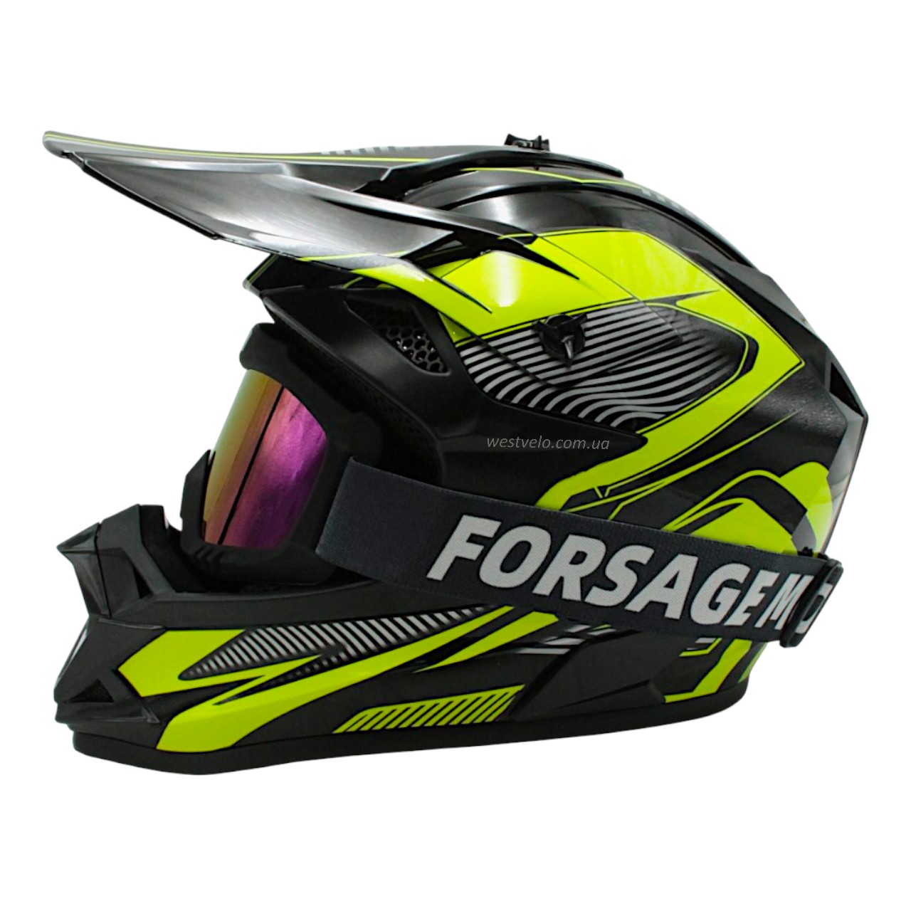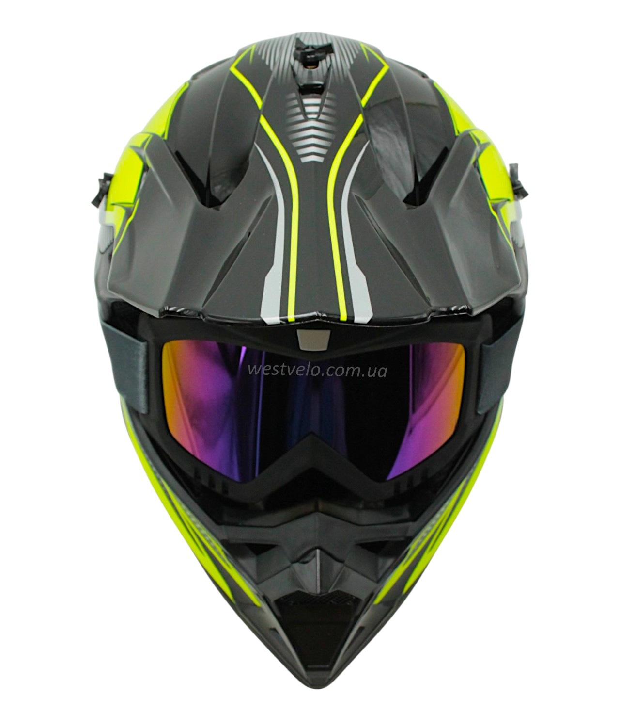 Шолом, закритий крос/ендуро (L) DOT/АТV EDX 024 чорно-жовтий глянець з дашком + окуляри