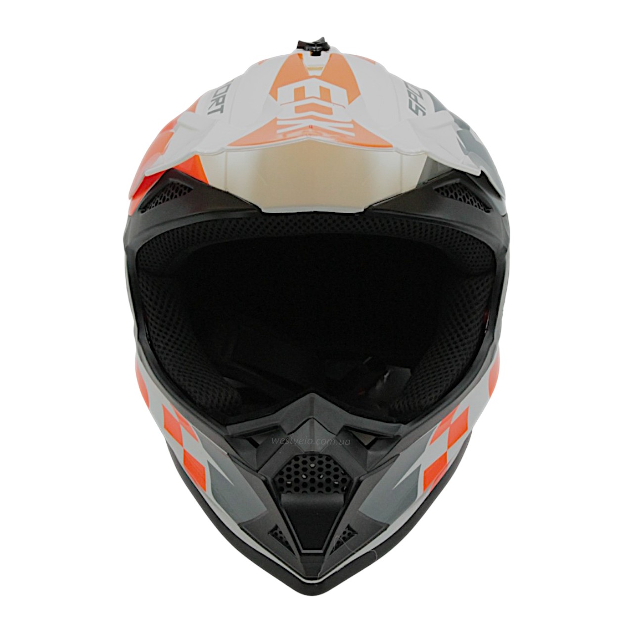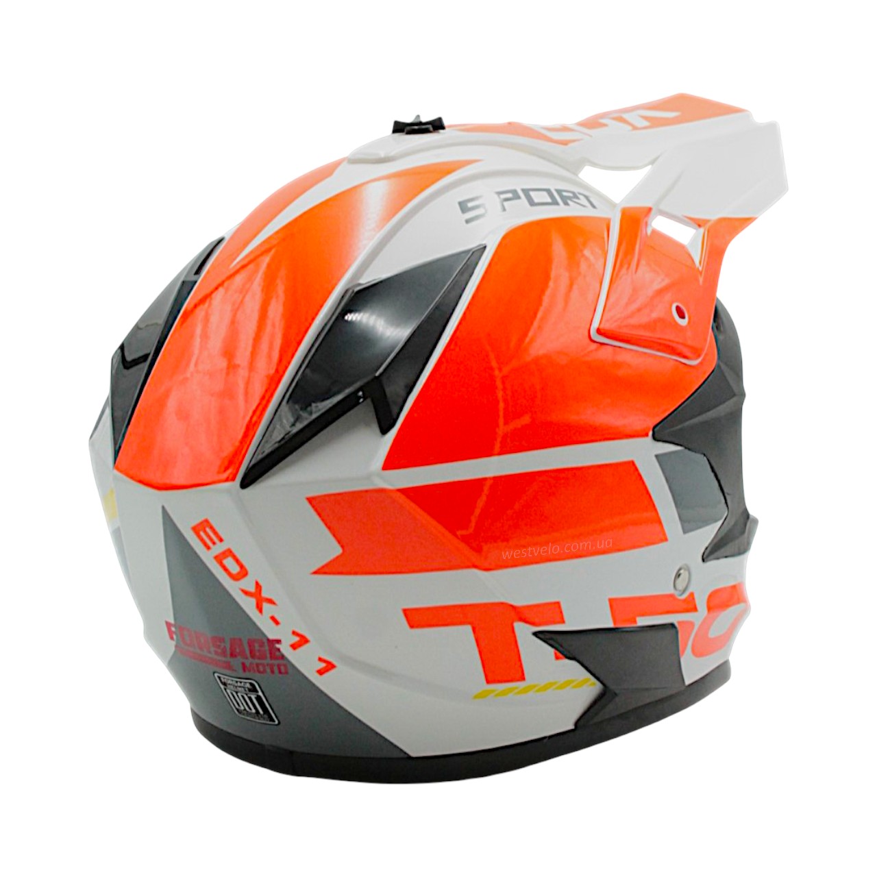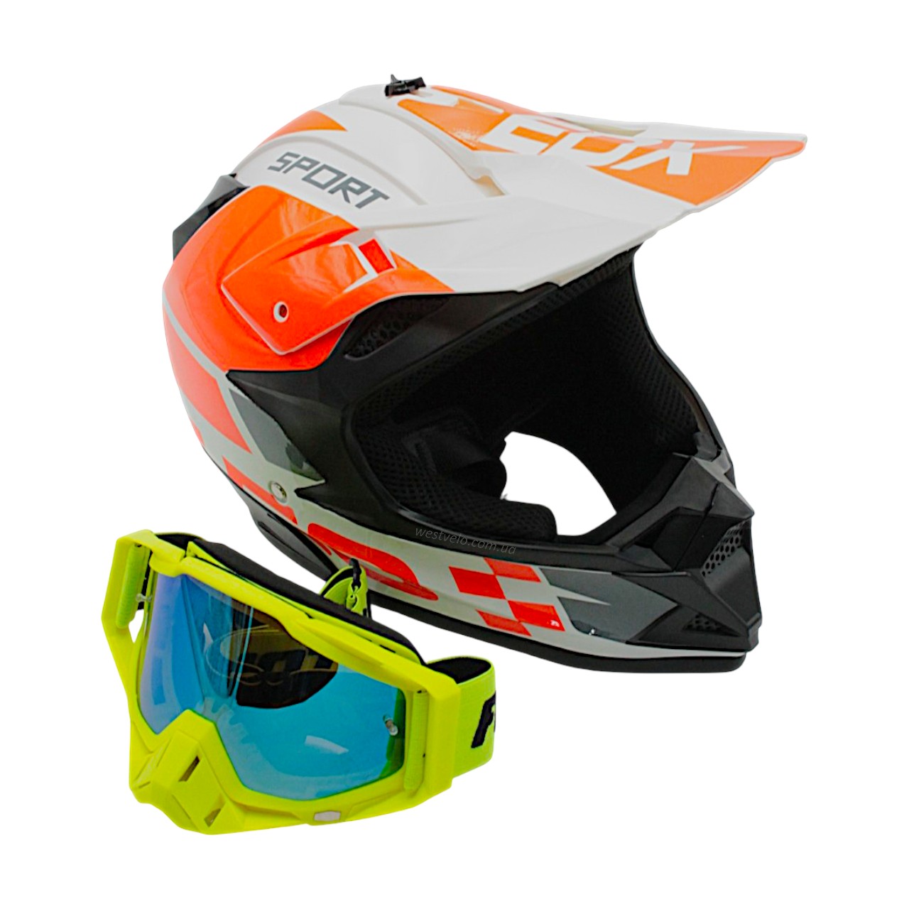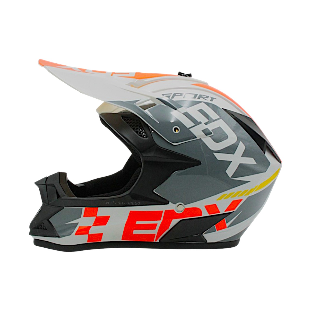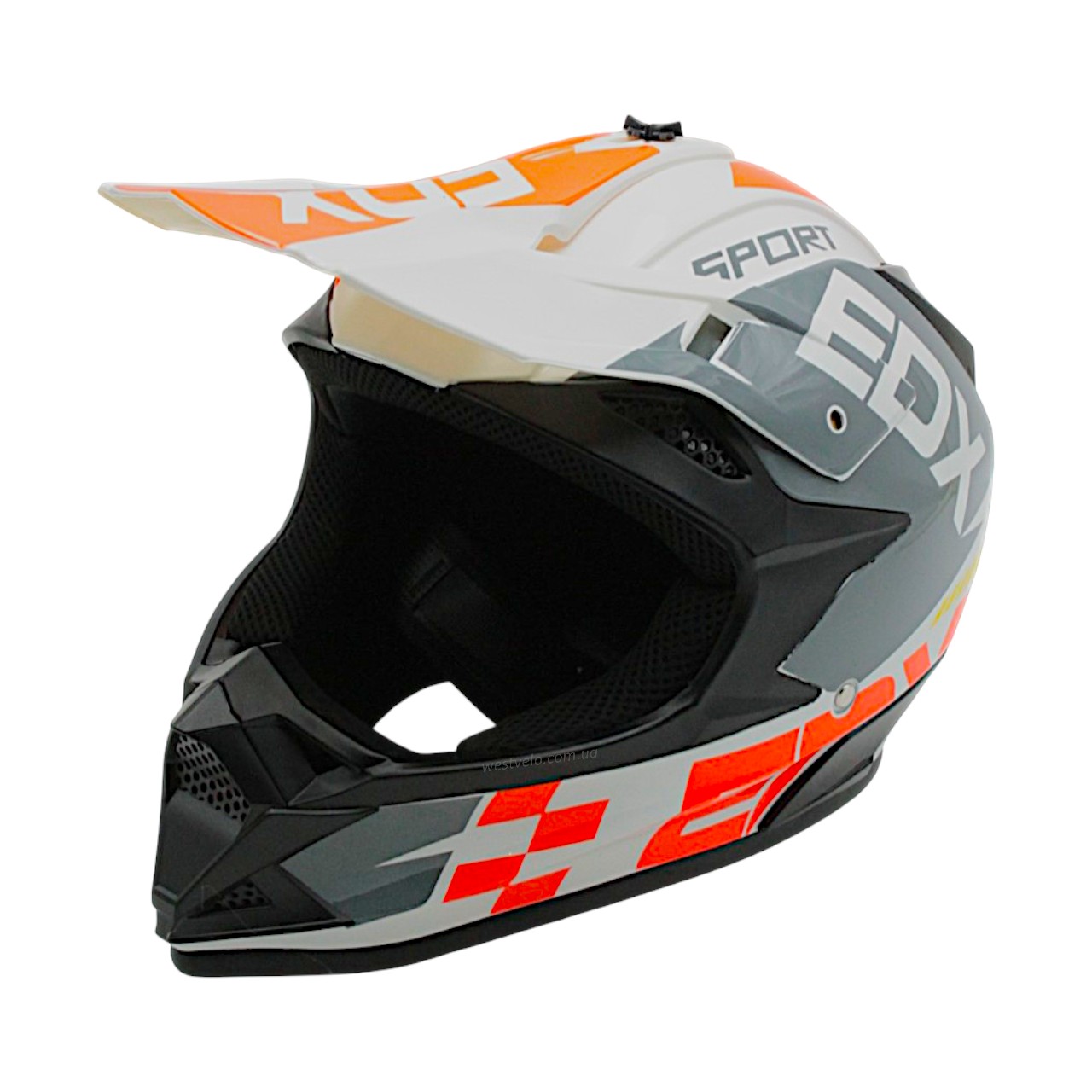Шолом, закритий крос/ендуро (XL) АТV EDX 020-1 чорно-біло-оранжевий глянець з дашком + окуляри