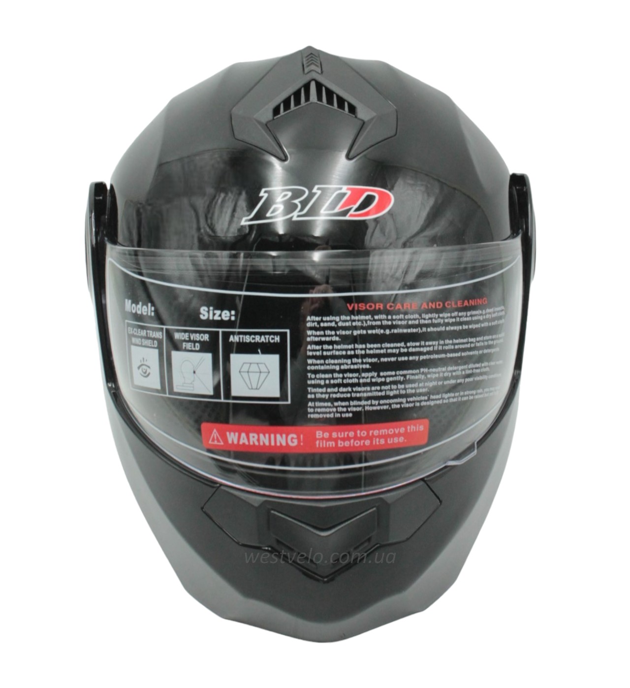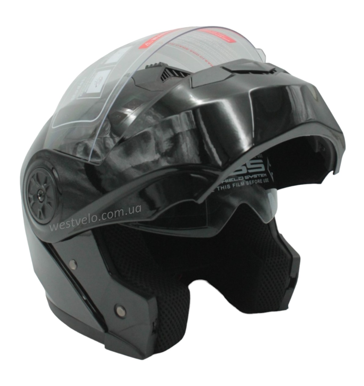 Мото шолом, трансформер (S 55-56) BLD-159 чорний глянець з відкидними окулярами