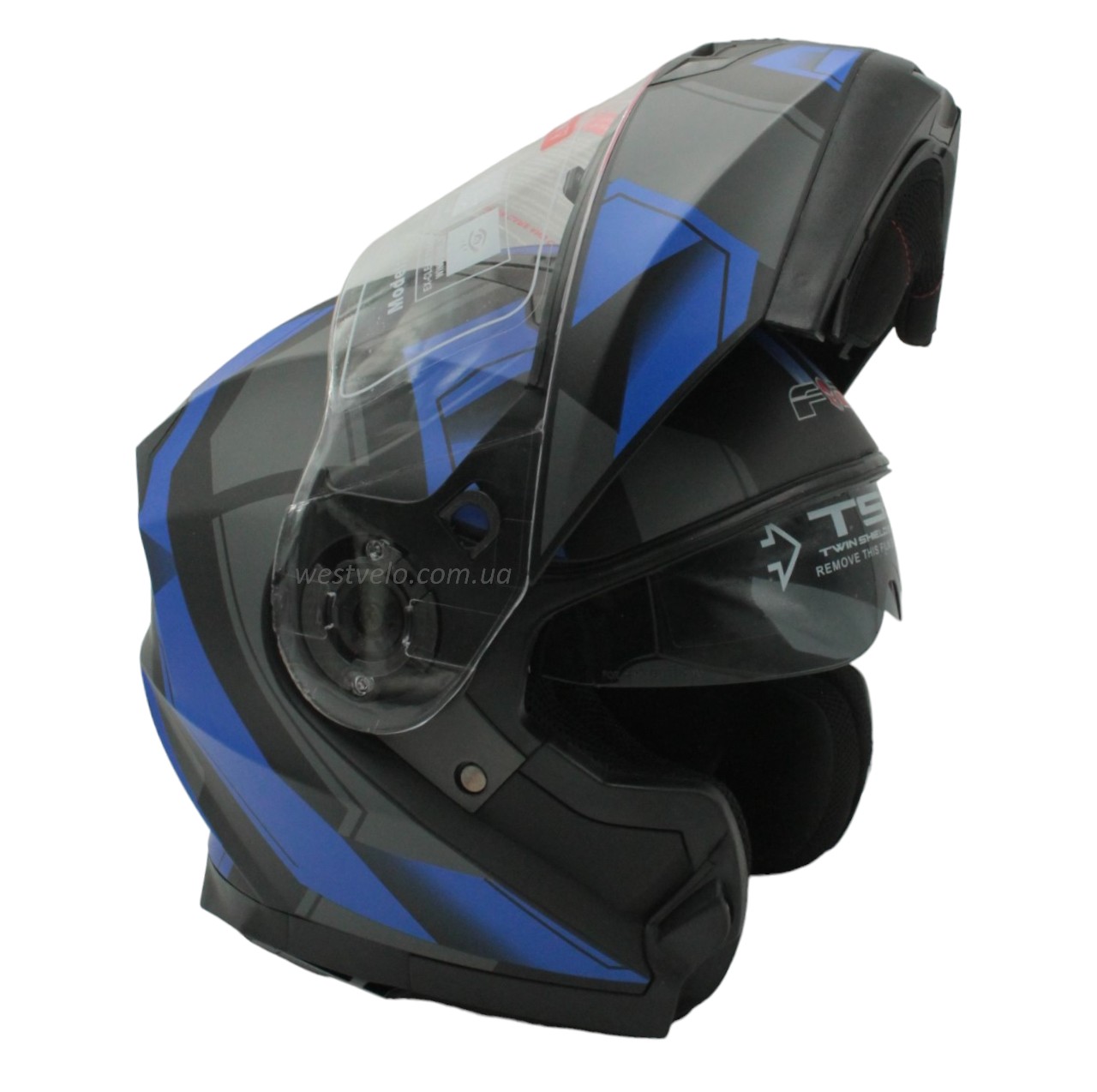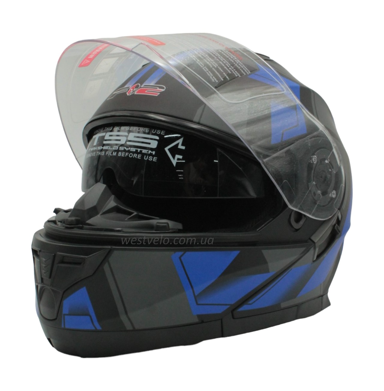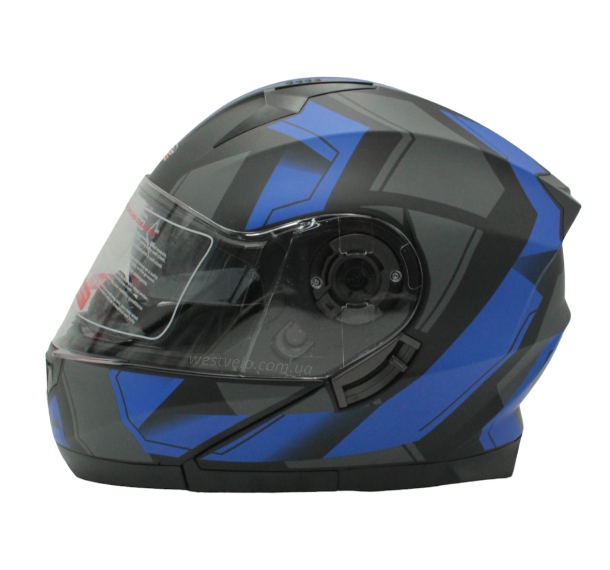 Мото шолом, трансформер (S 55-56) F2 162 чорно-синій, матовий з відкидними окулярами