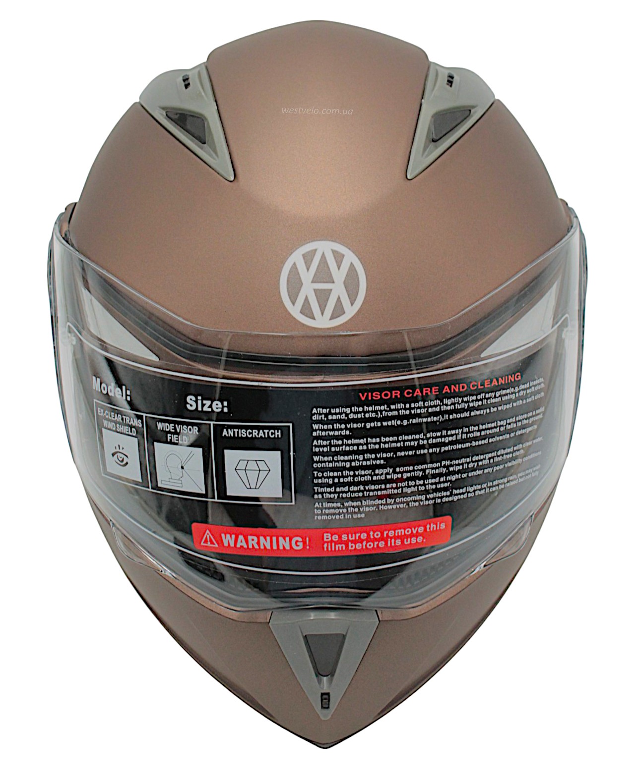 Мото шолом, трансформер (L) (59-60) VLAND 158 бронзовий матовий з відкидними окулярами