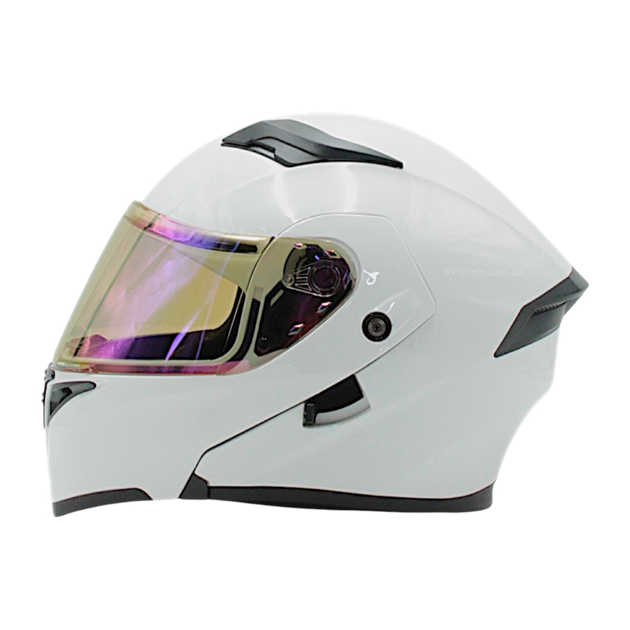 Мото шолом, трансформер (L) "91" білий глянец, вмонтовані окуляри