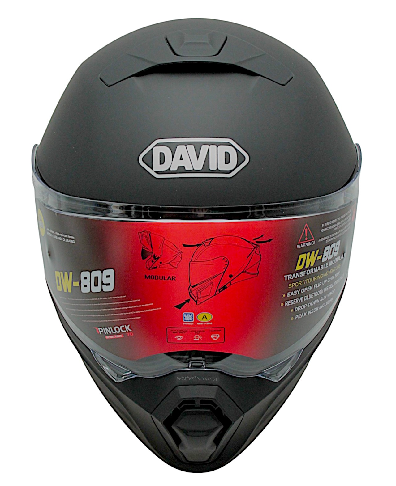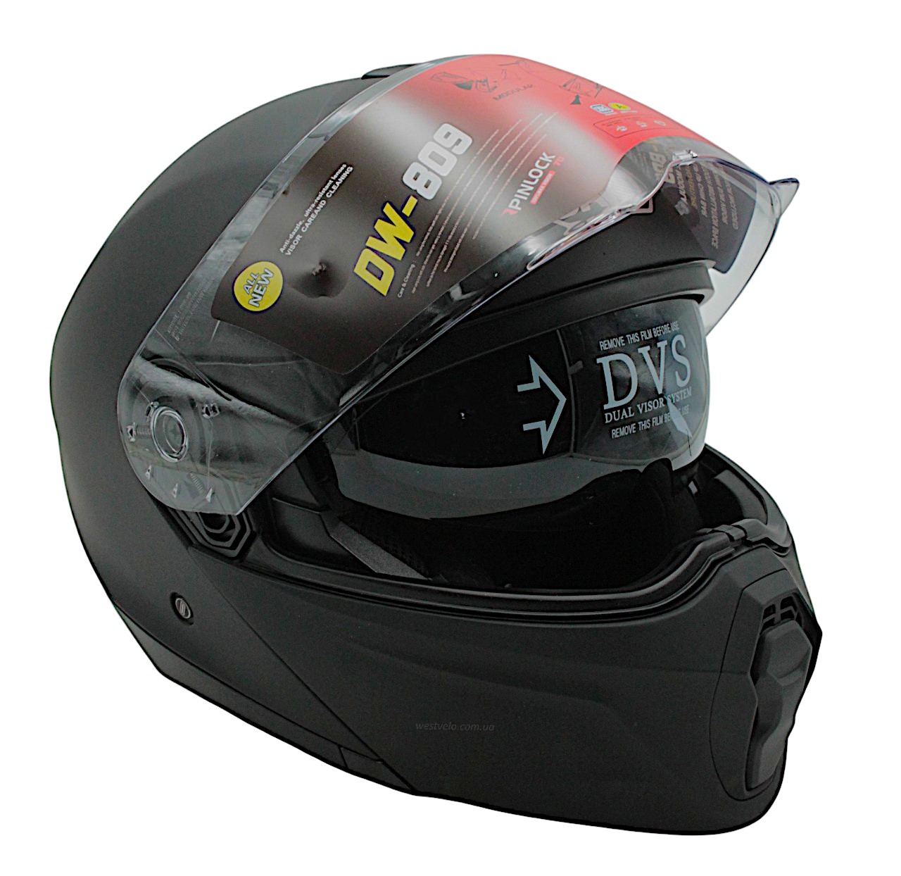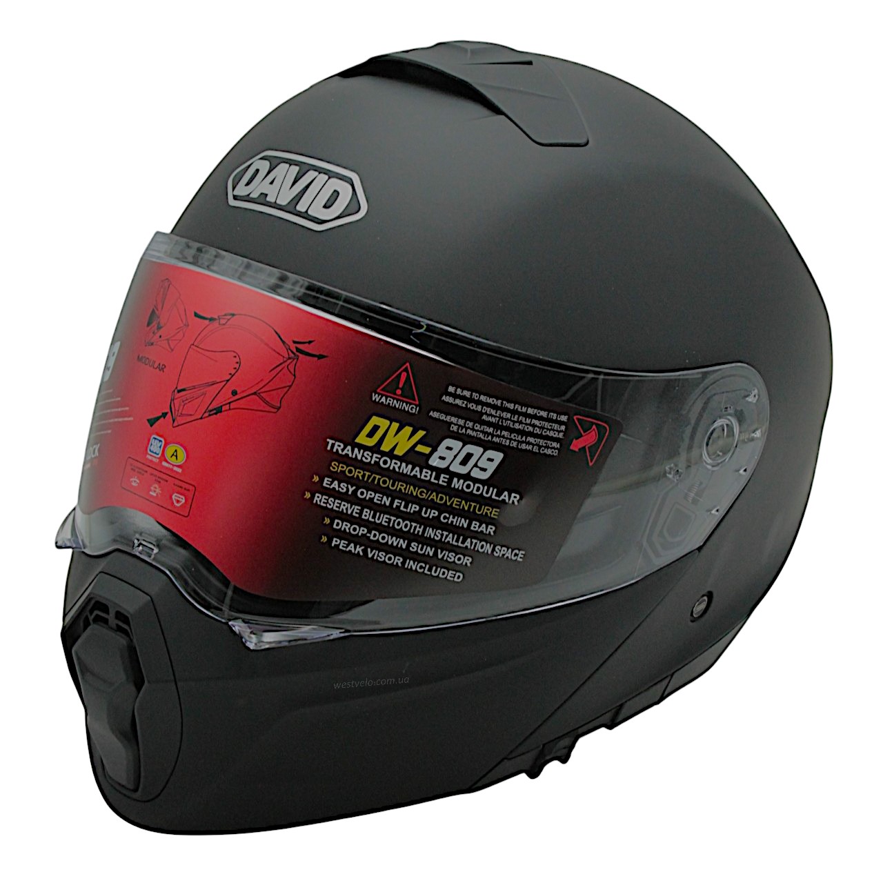 Мото шолом, трансформер (L) DAVID D809 чорний матовий з відкидними окулярами (ABS)