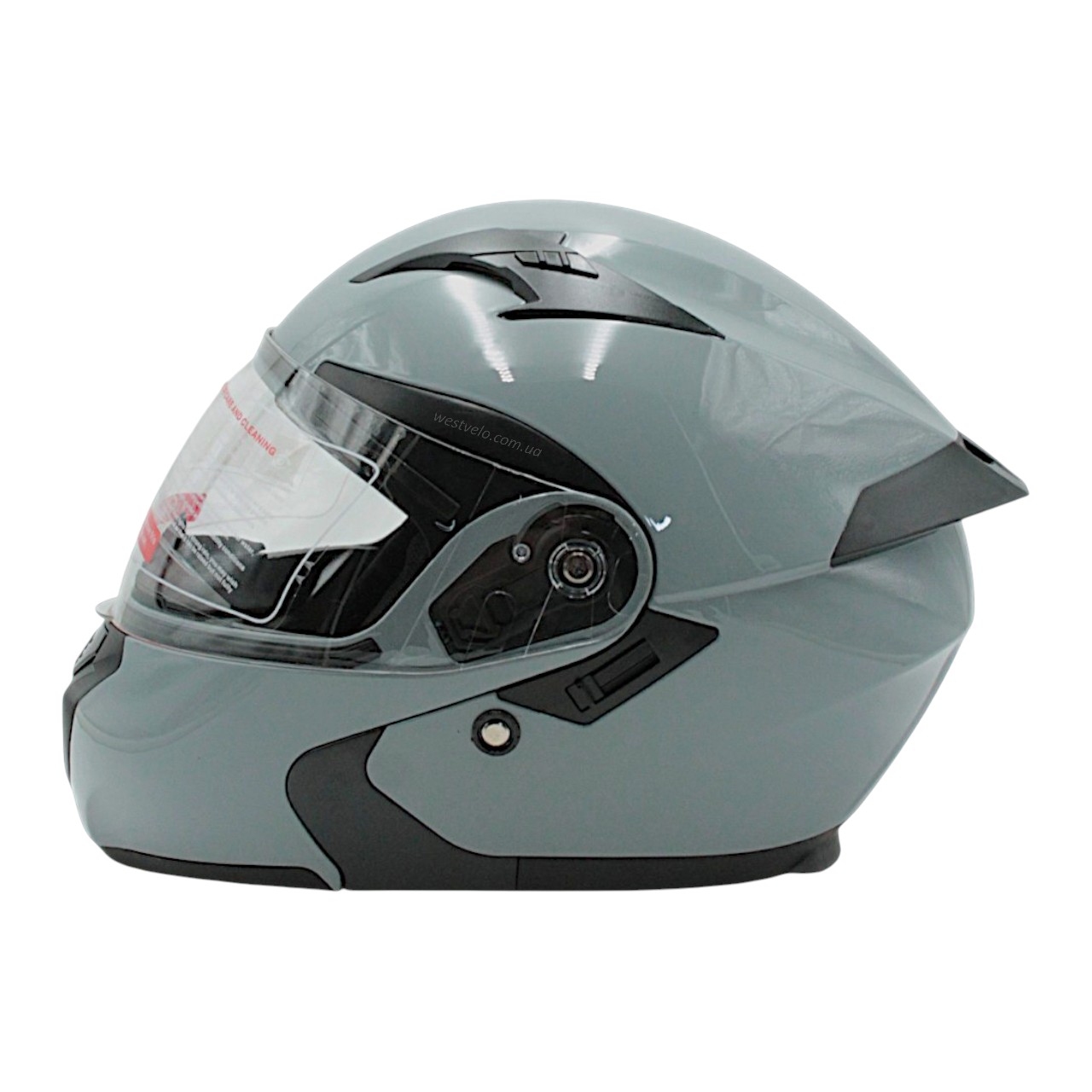 Мото шолом, трансформер (S 55-56) "516" сірий глянцевий, вмонтовані окуляри