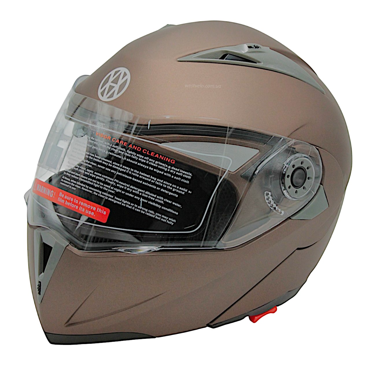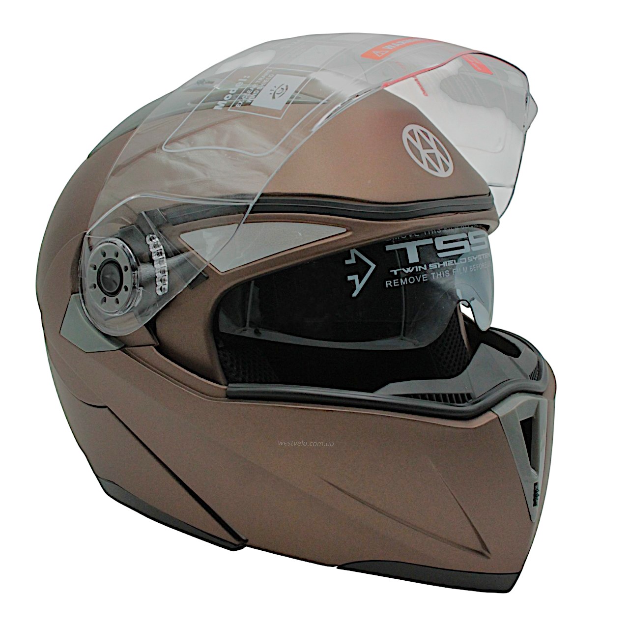 Мото шолом, трансформер (S) (55-56см) VLAND 158 бронзовий матовий з відкидними окулярами