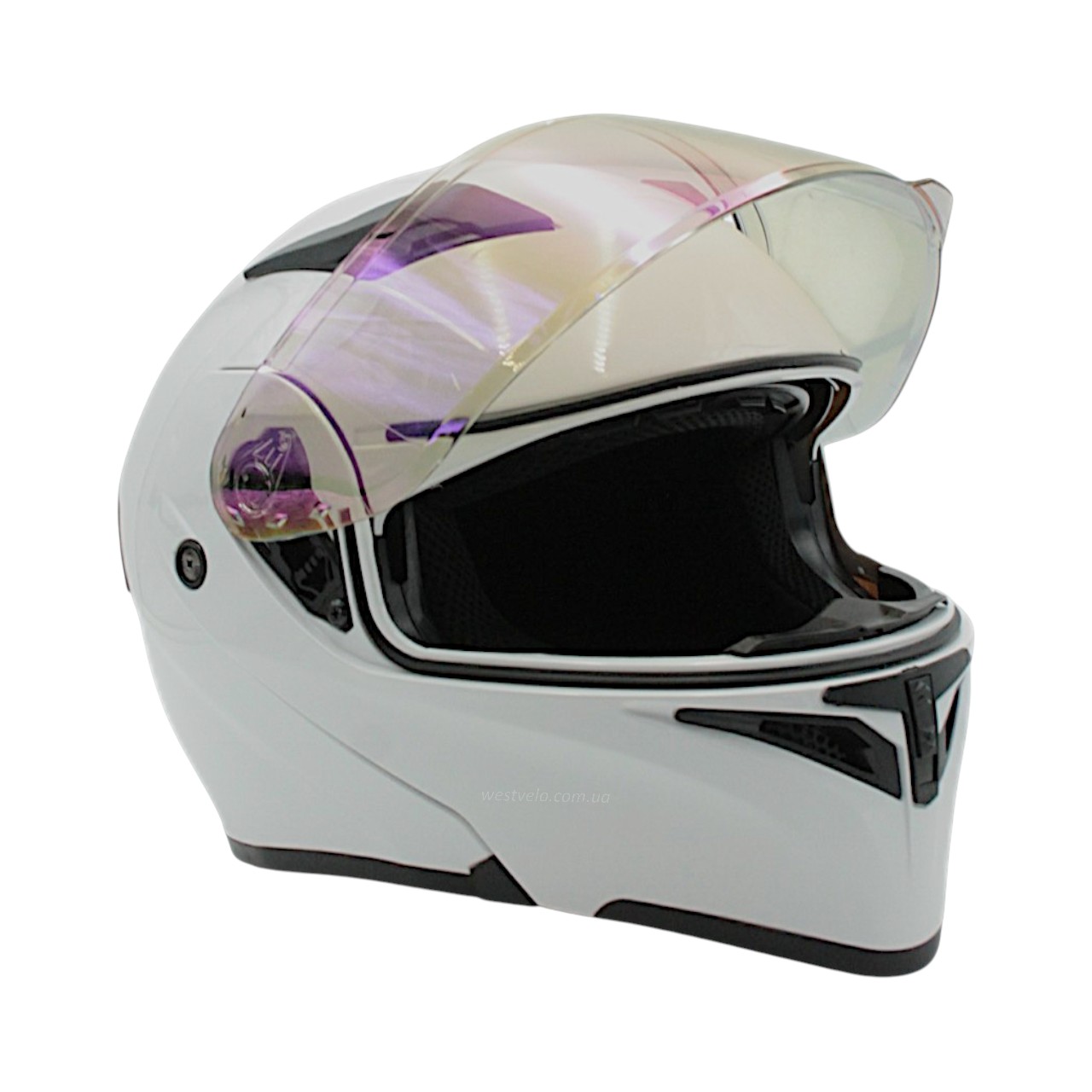 Мото шолом, трансформер (S) "91" білий глянец, вмонтовані окуляри