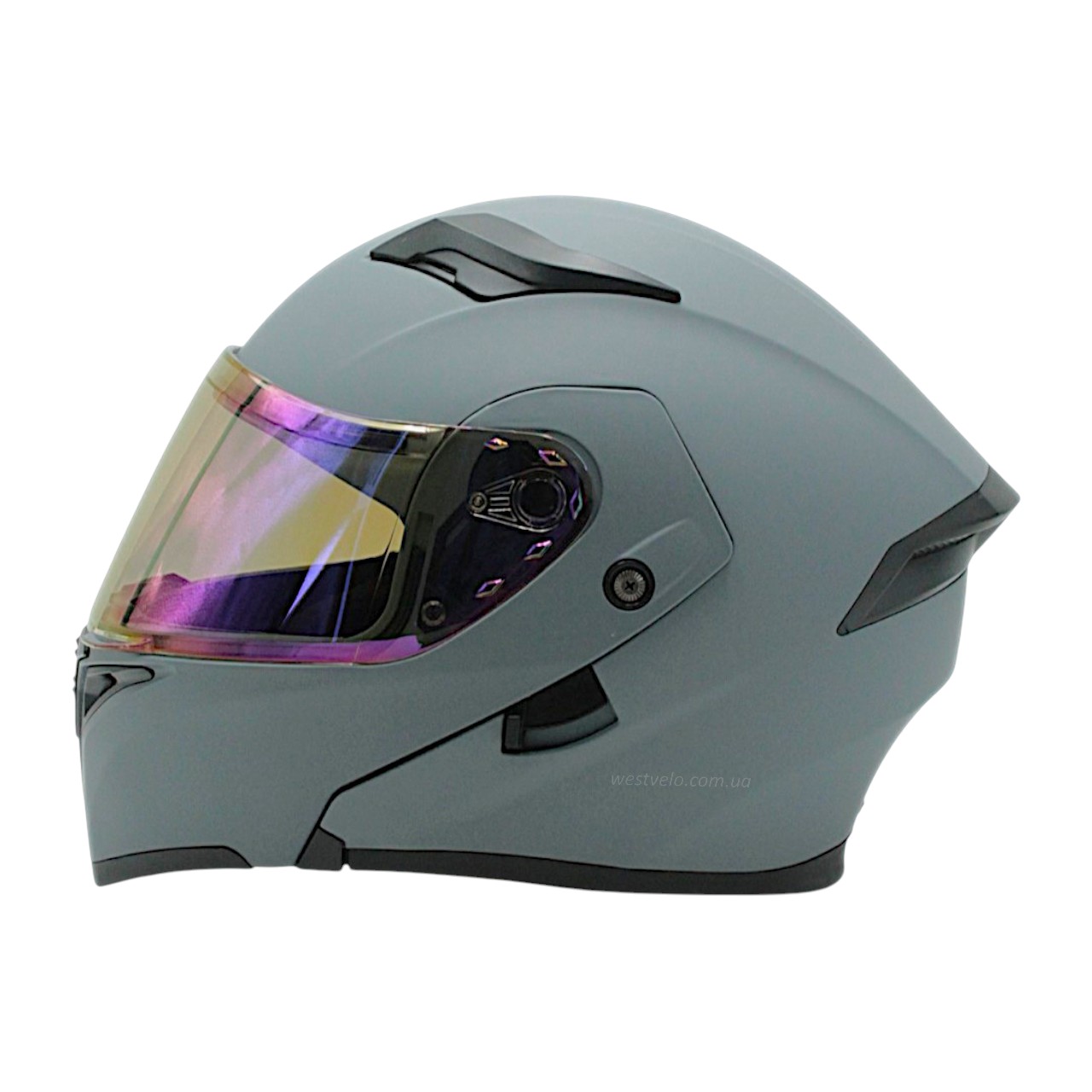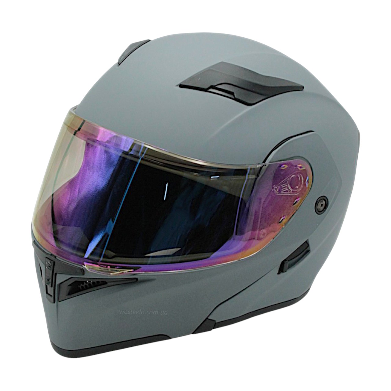 Мото шолом, трансформер (XL) "90" сірий матовий, вмонтовані окуляри