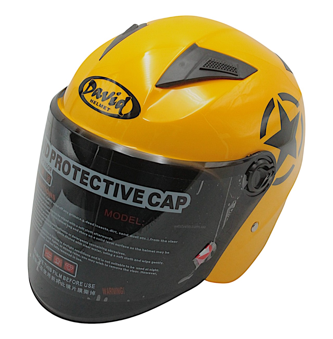 Мото шолом, відкритий (L) "DAVID" D017, Willys Star, жовтий глянцевий (ABS)