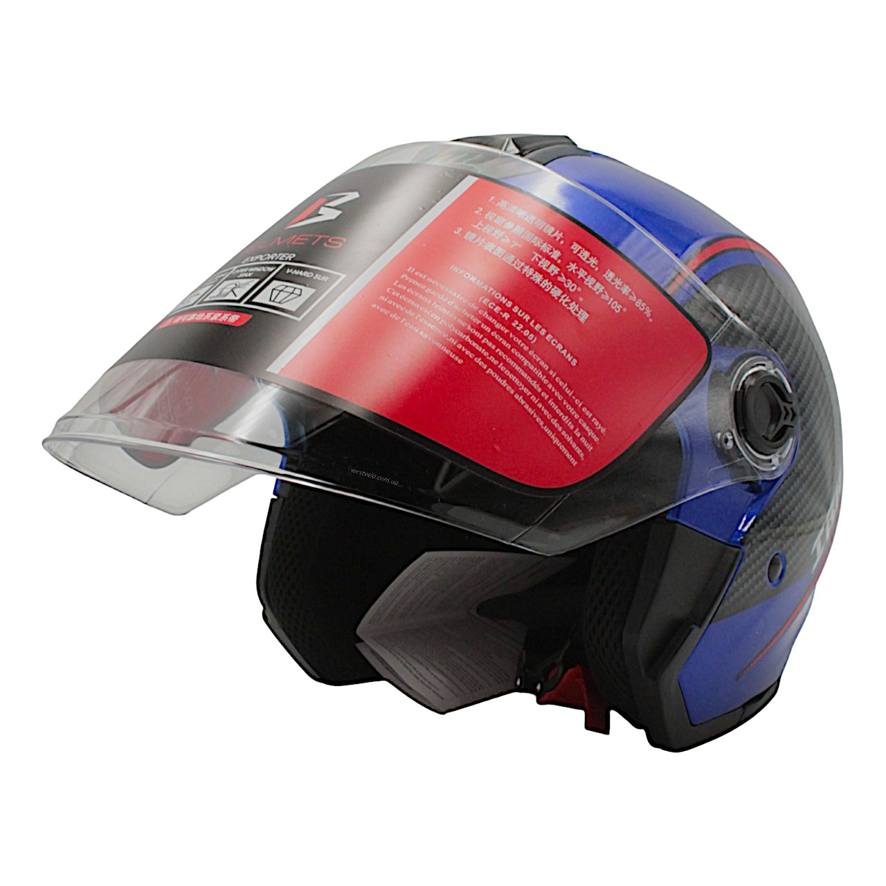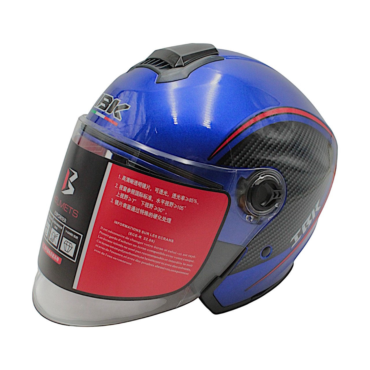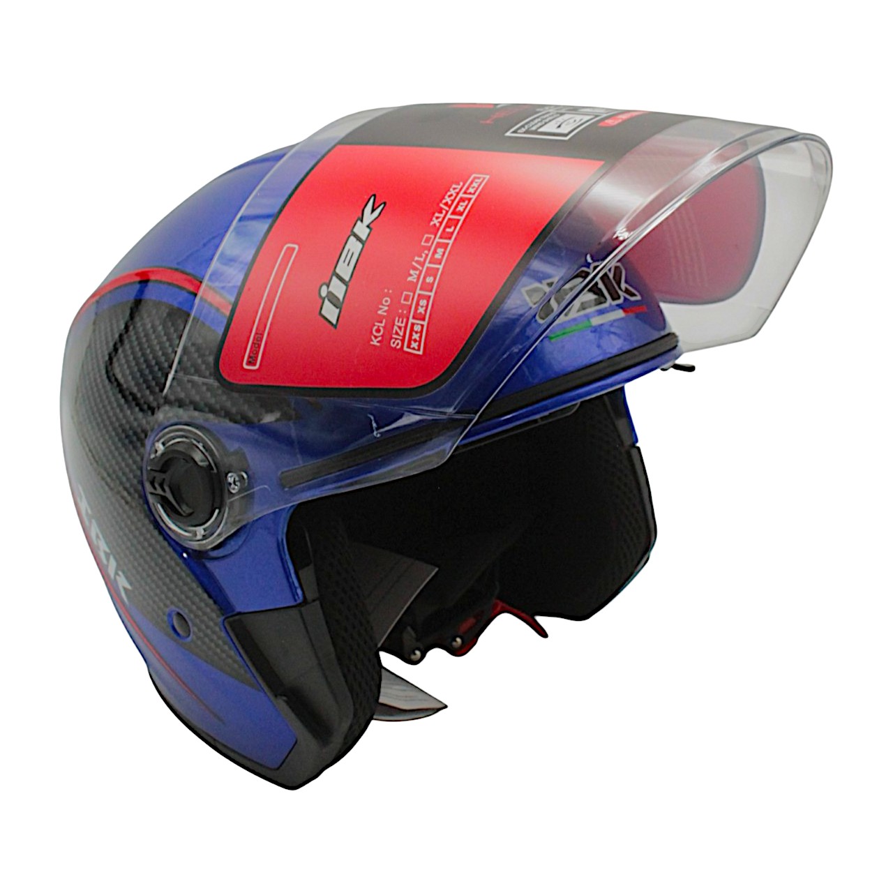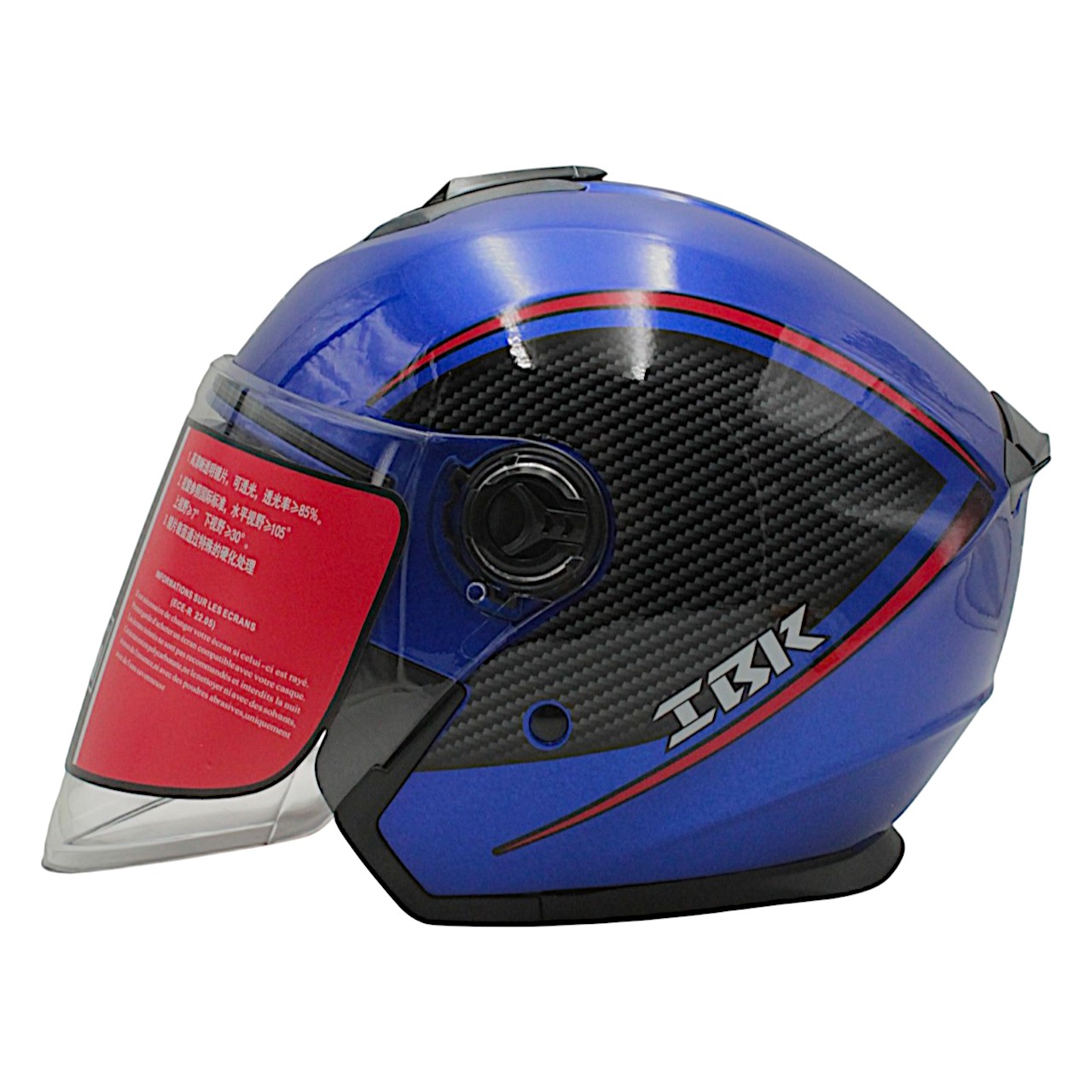 Мото шолом, відкритий (L) "IBK" 705, синій карбон з відкідними окулярами