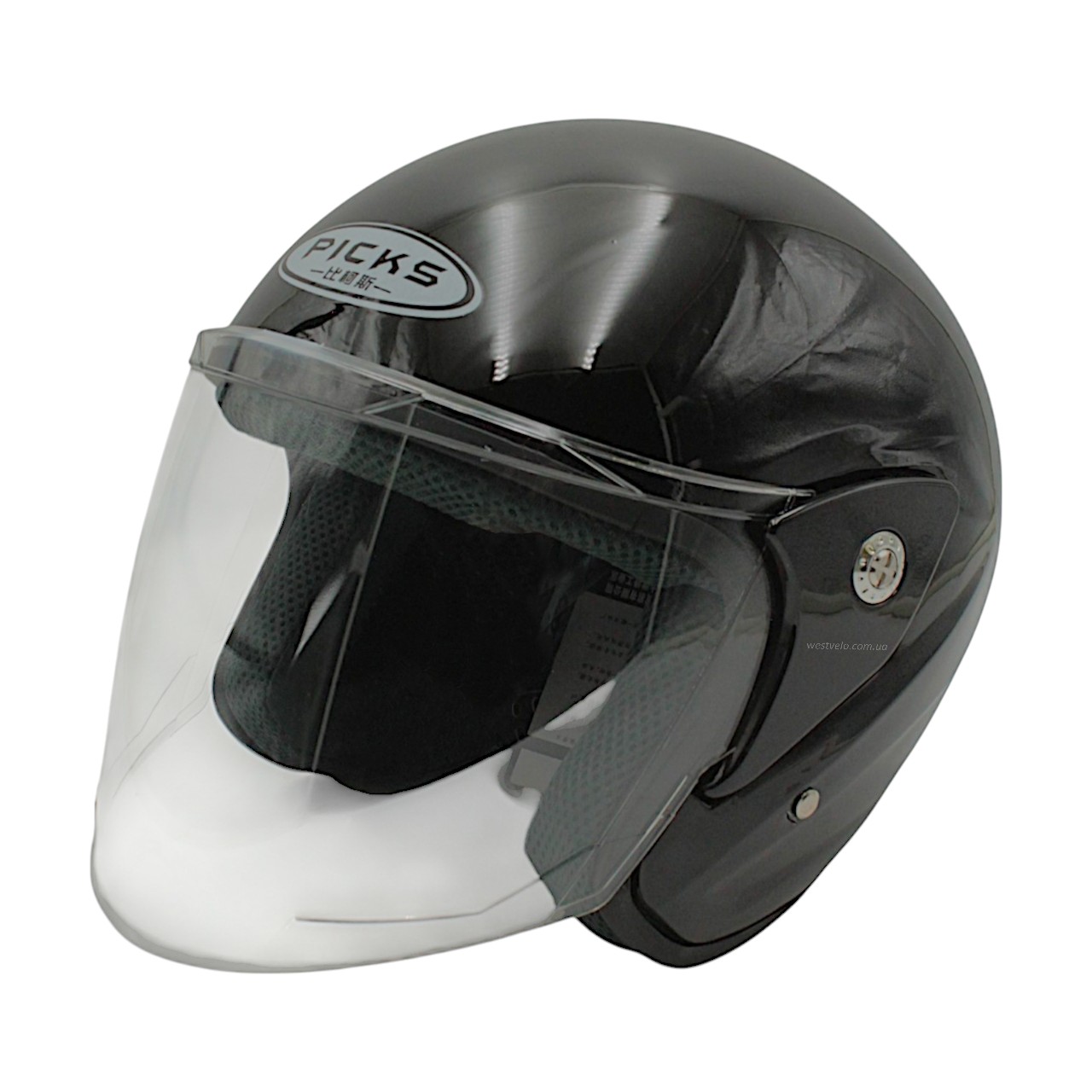Мото шолом, відкритий (L) PICKS АТ-666 чорний глянець