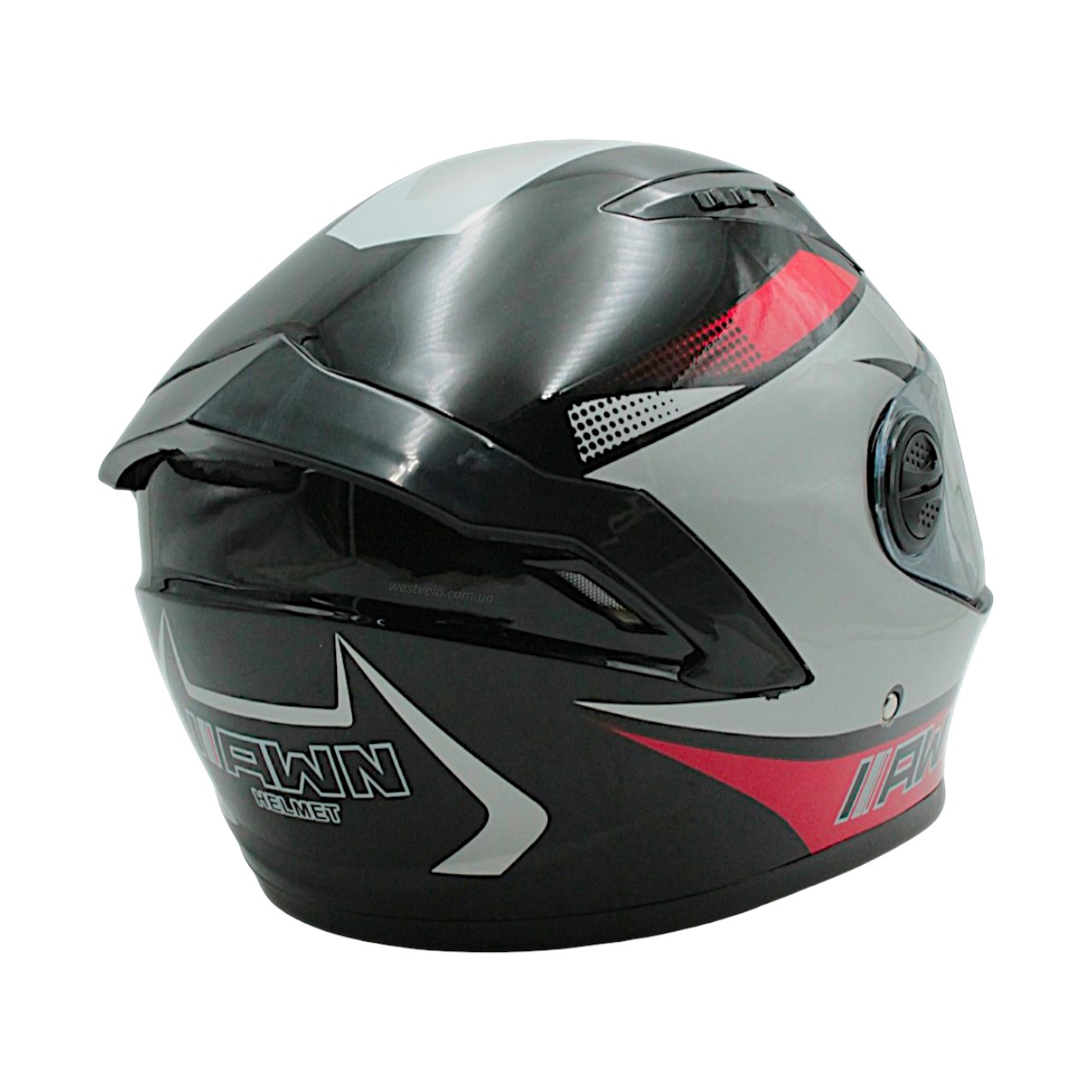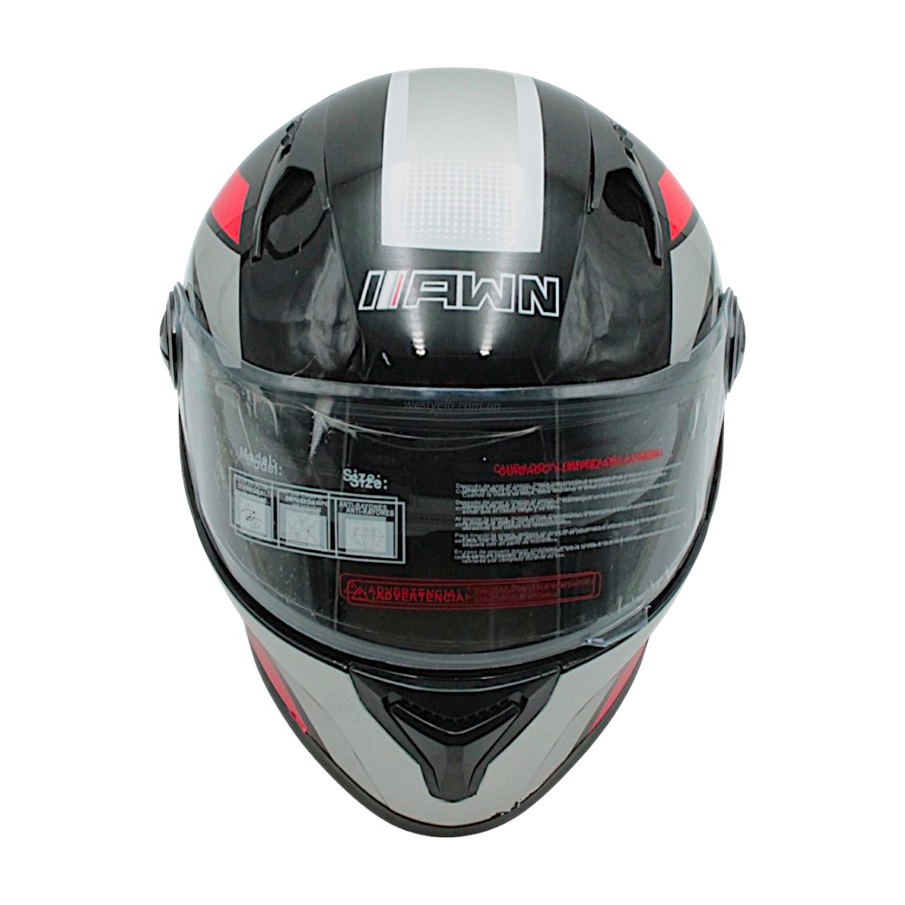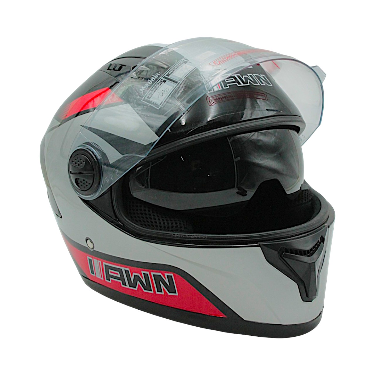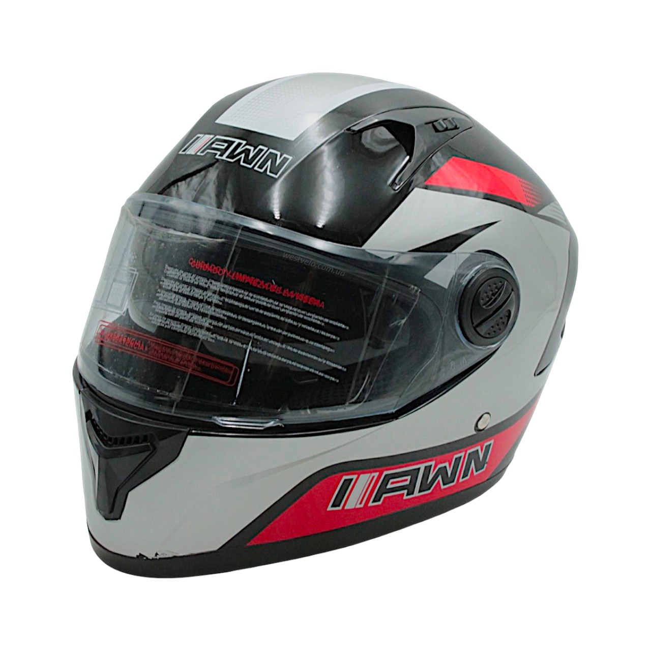 Мото шолом, закритий (L) AWN "319" чорно-сіро-червоний вмонтовані окуляри