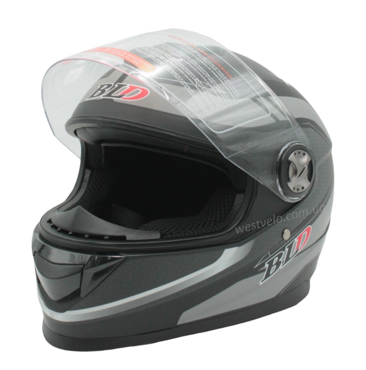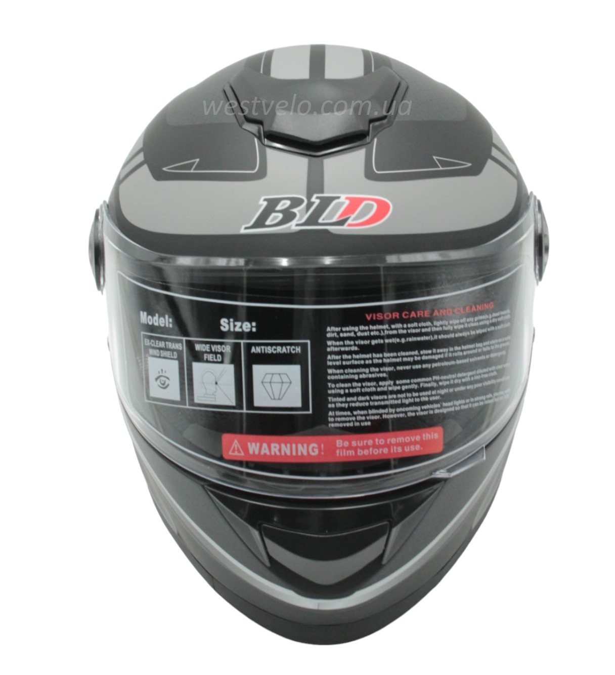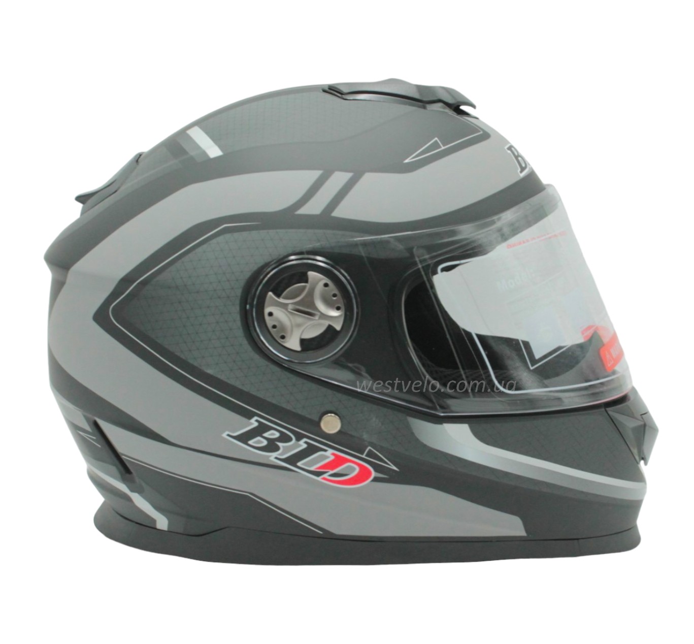 Мото шолом, закритий (S 55-56) BLD-М65 інтеграл, чорний матовий з сірим малюнком