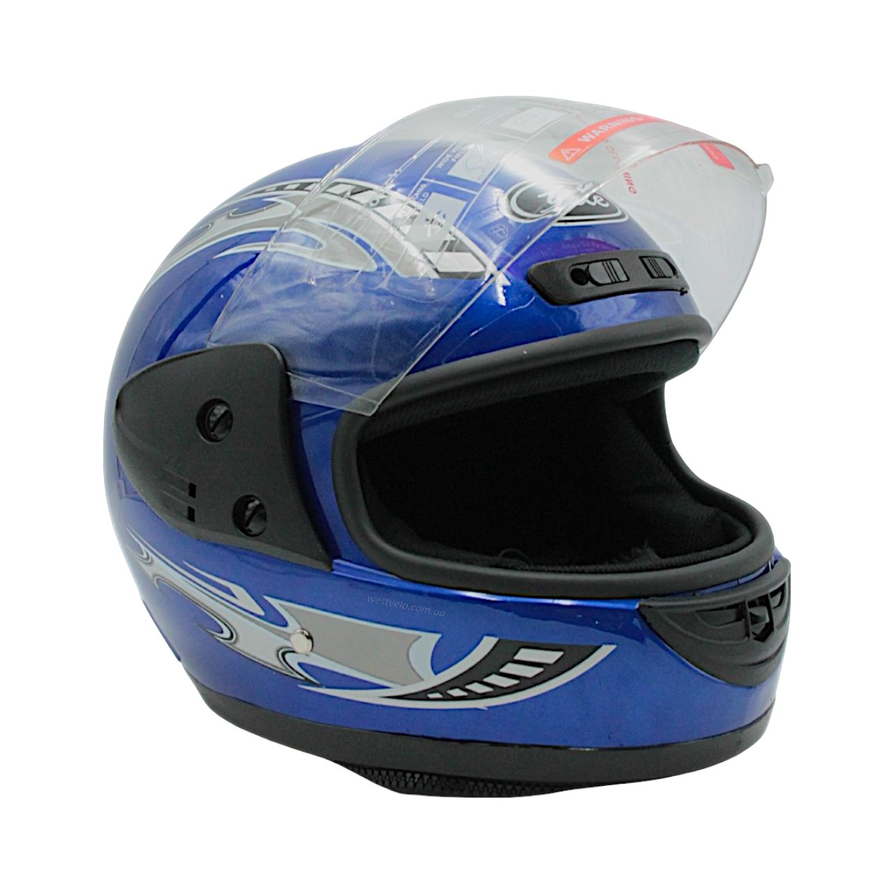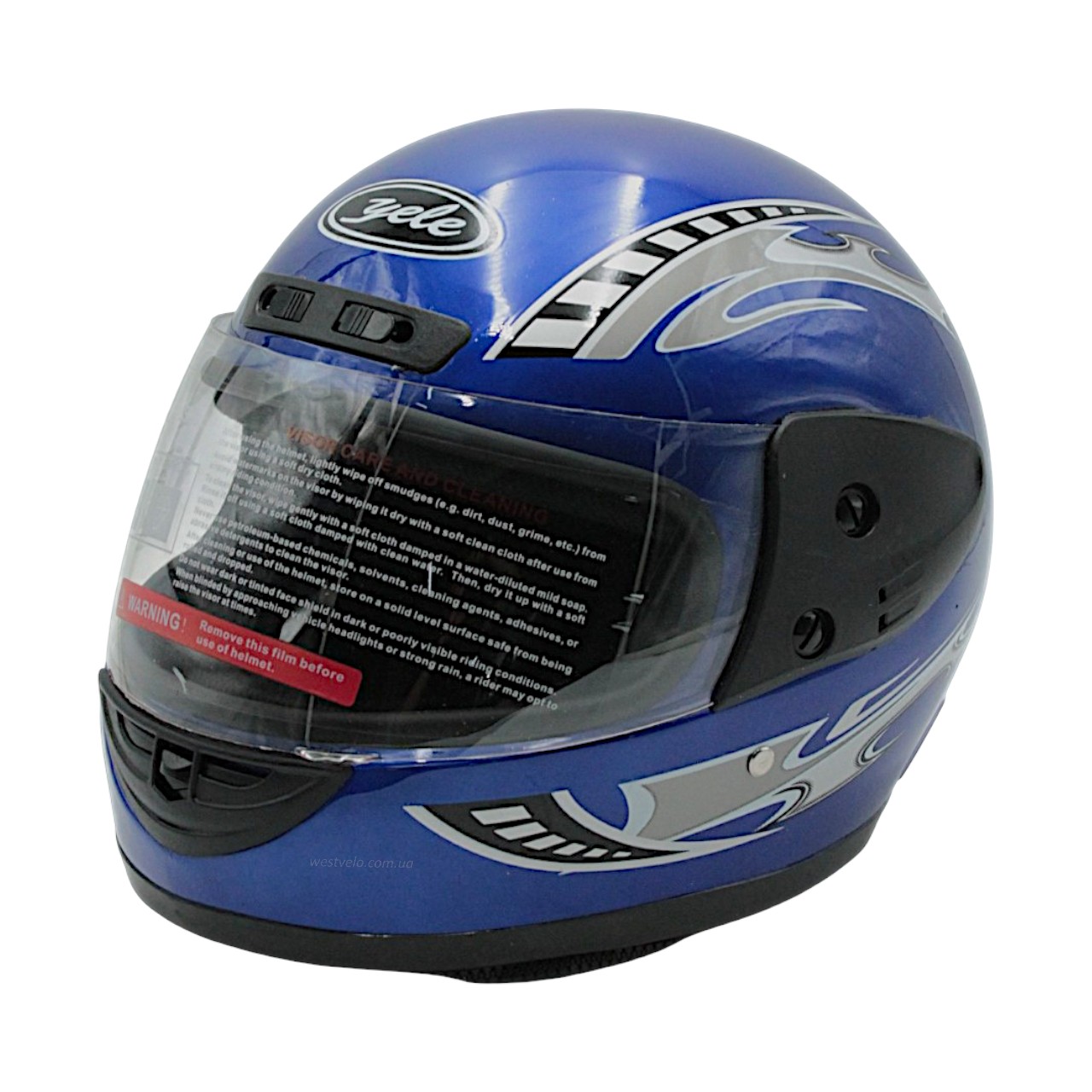 Мото шолом, закритий "CNJM" YELE, інтеграл, синій глянець з чорно-сірим малюнком, з коміром