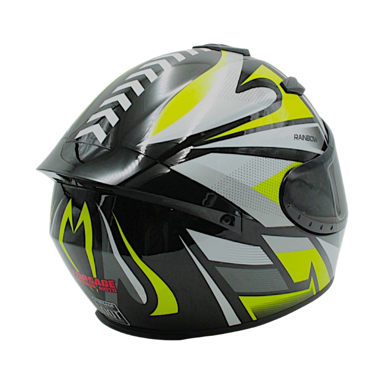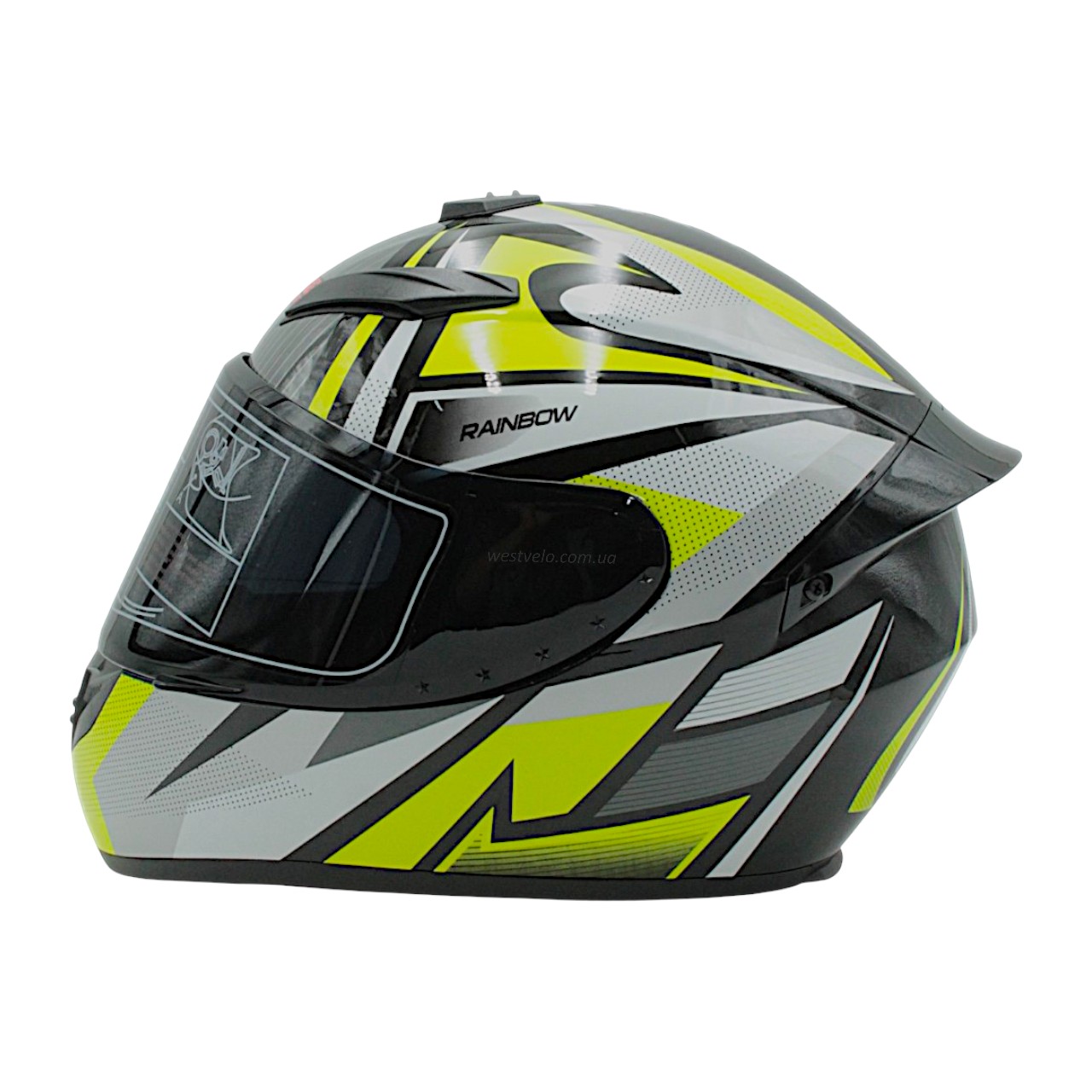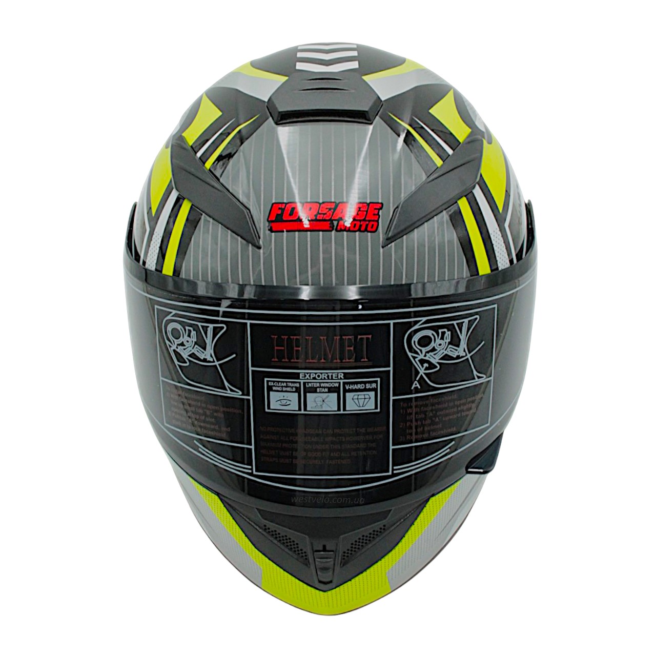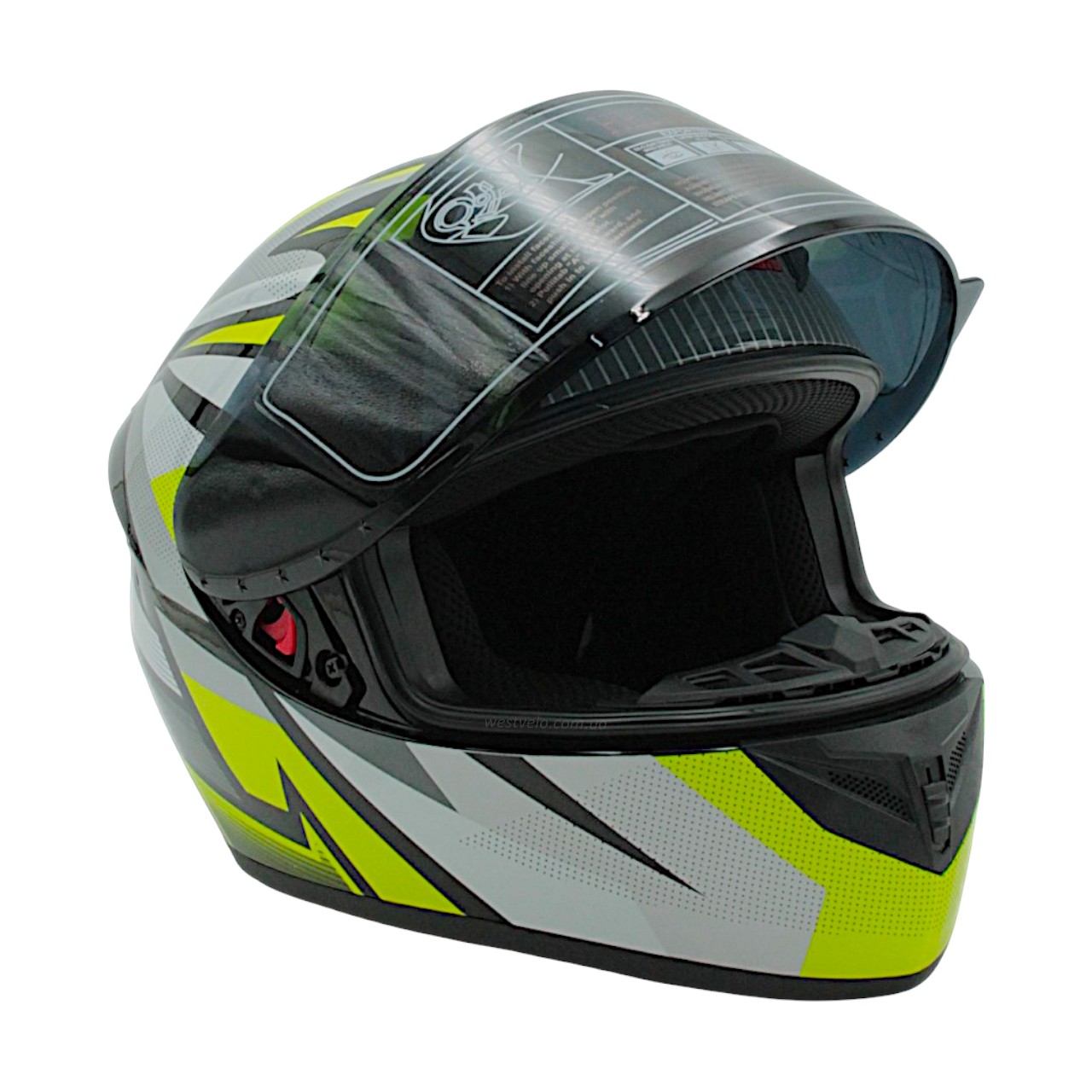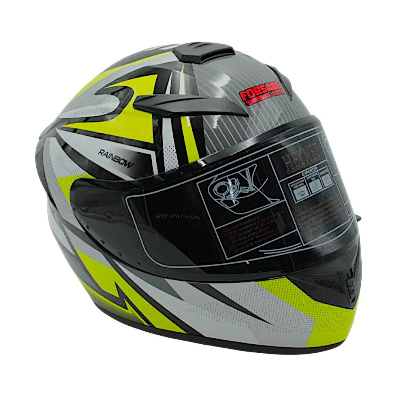 Мото шолом, закритий (L) "221" чорно-зелено-сірий, глянцевий
