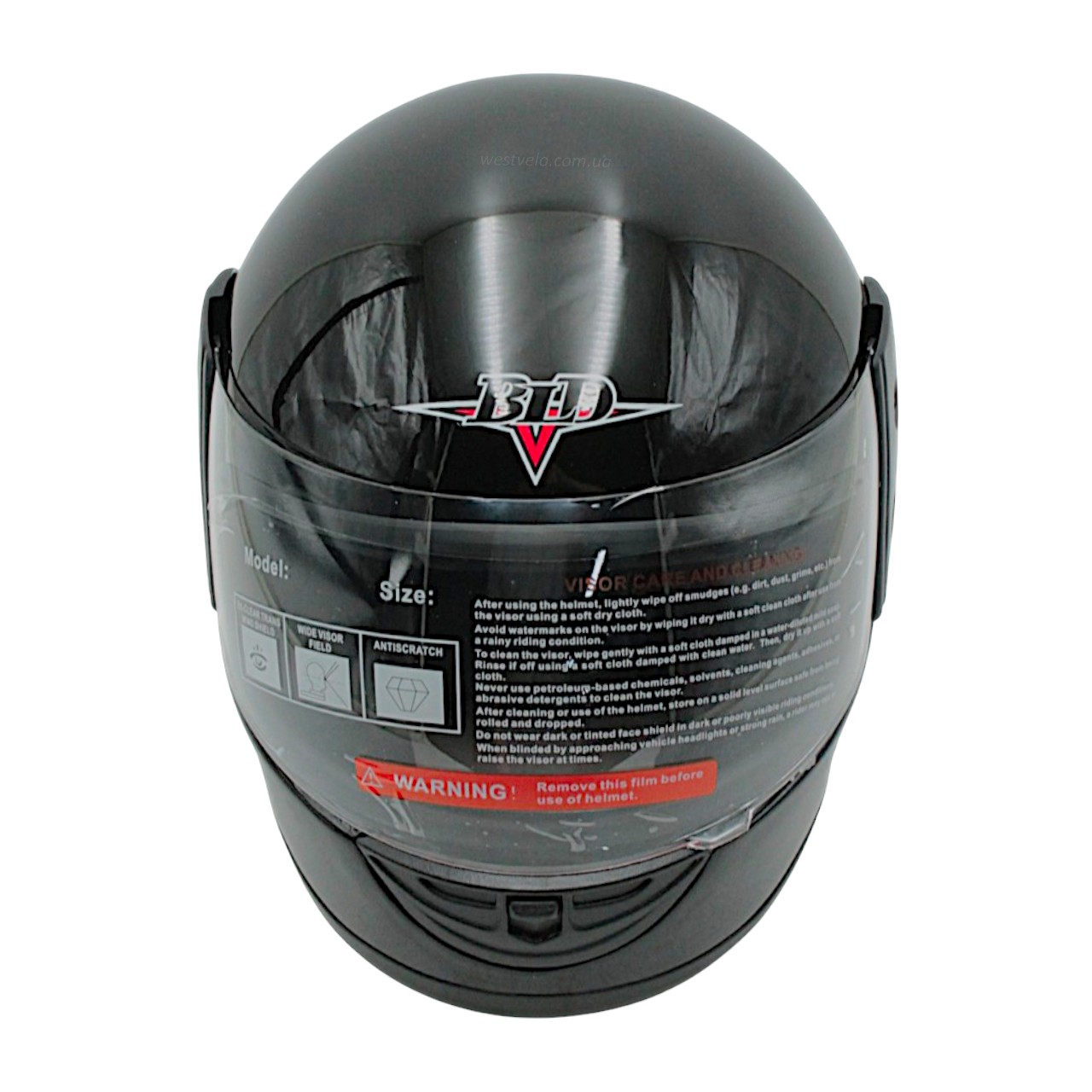 Мото шолом, закритий (L 59-60) BLD, чорний, глянець (825)