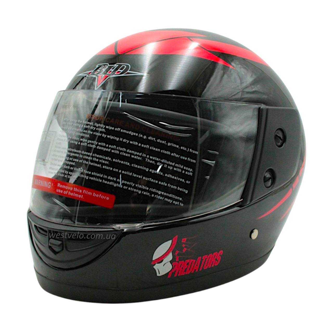Мото шолом, закритий (L 59-60) BLD "PREDA TORS", чорно-червоний, глянцевий (825)