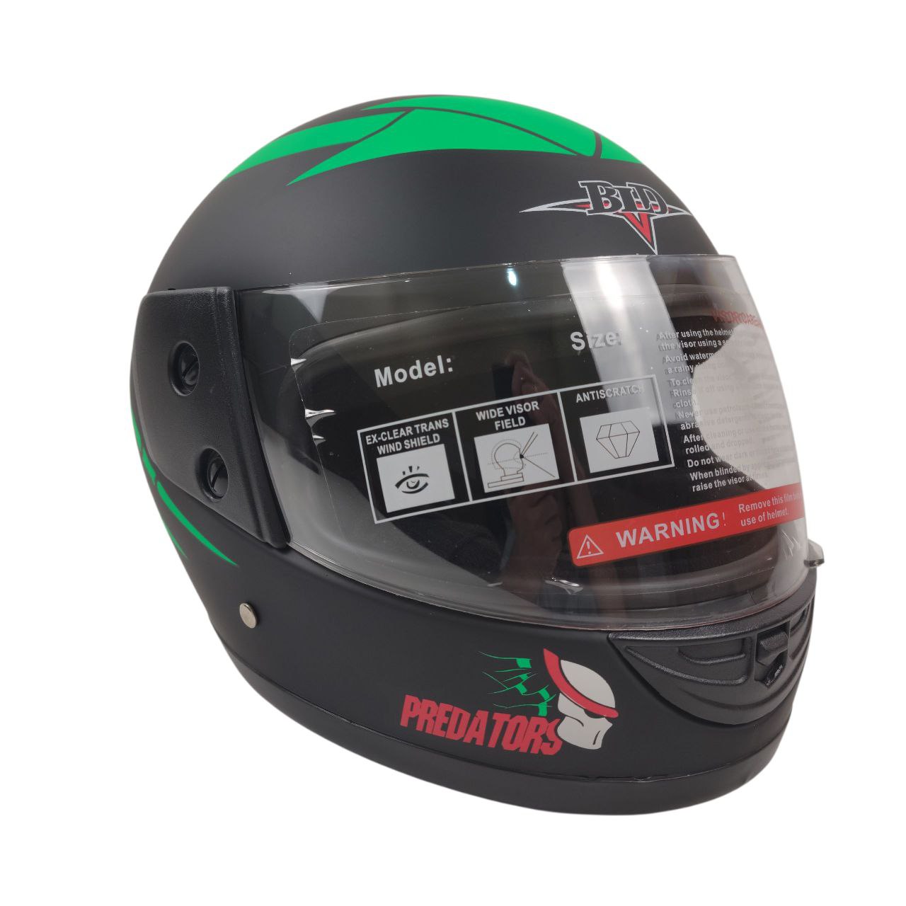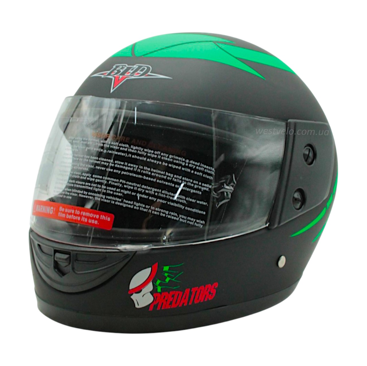 Мото шолом, закритий (L 59-60) BLD "PREDA TORS", чорно-зелений, матовий (825)