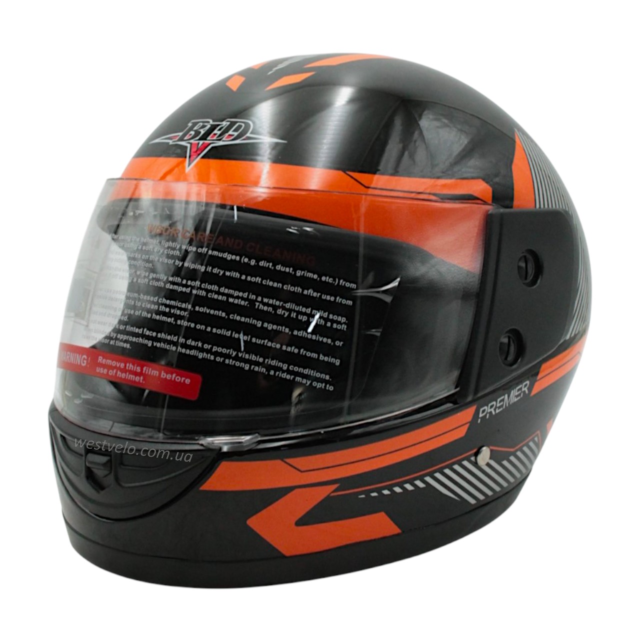 Мото шолом, закритий (L 59-60) BLD "PREMIER" чорно-помаранчевий, глянець (825)