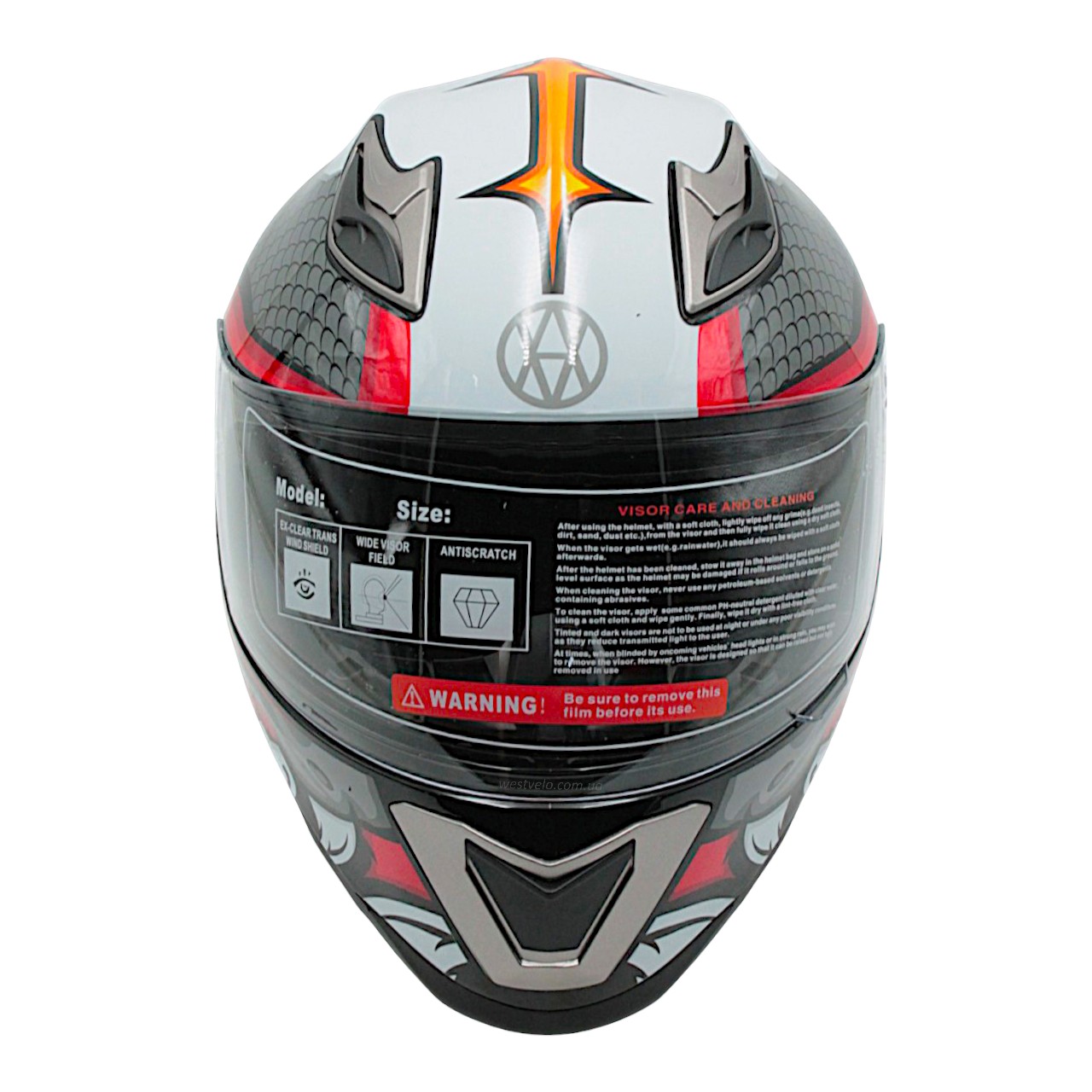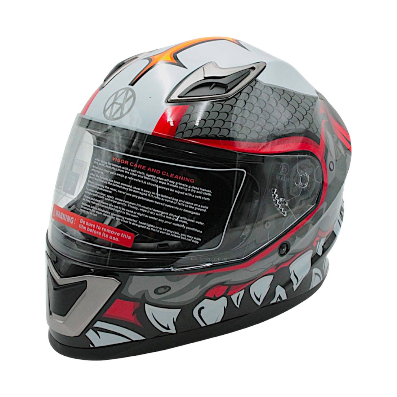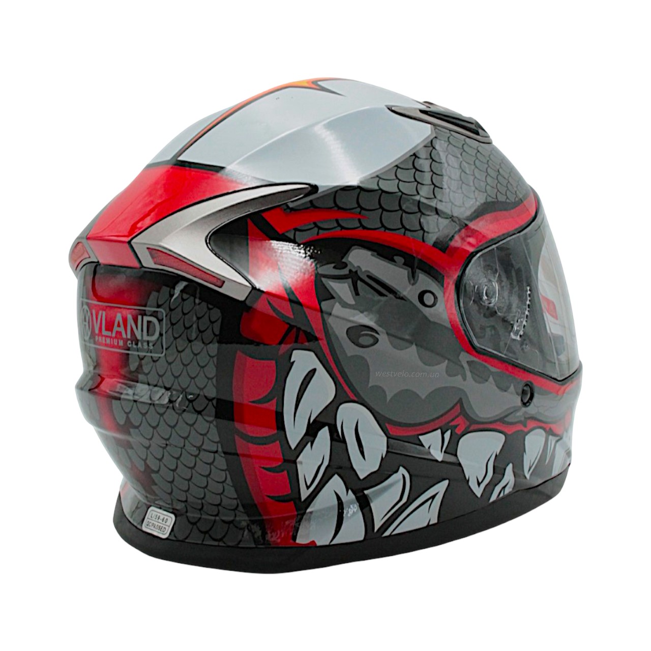 Мото шолом, закритий (L 59-60) VLAND M62-Dino, інтеграл, червоний, глянцевий