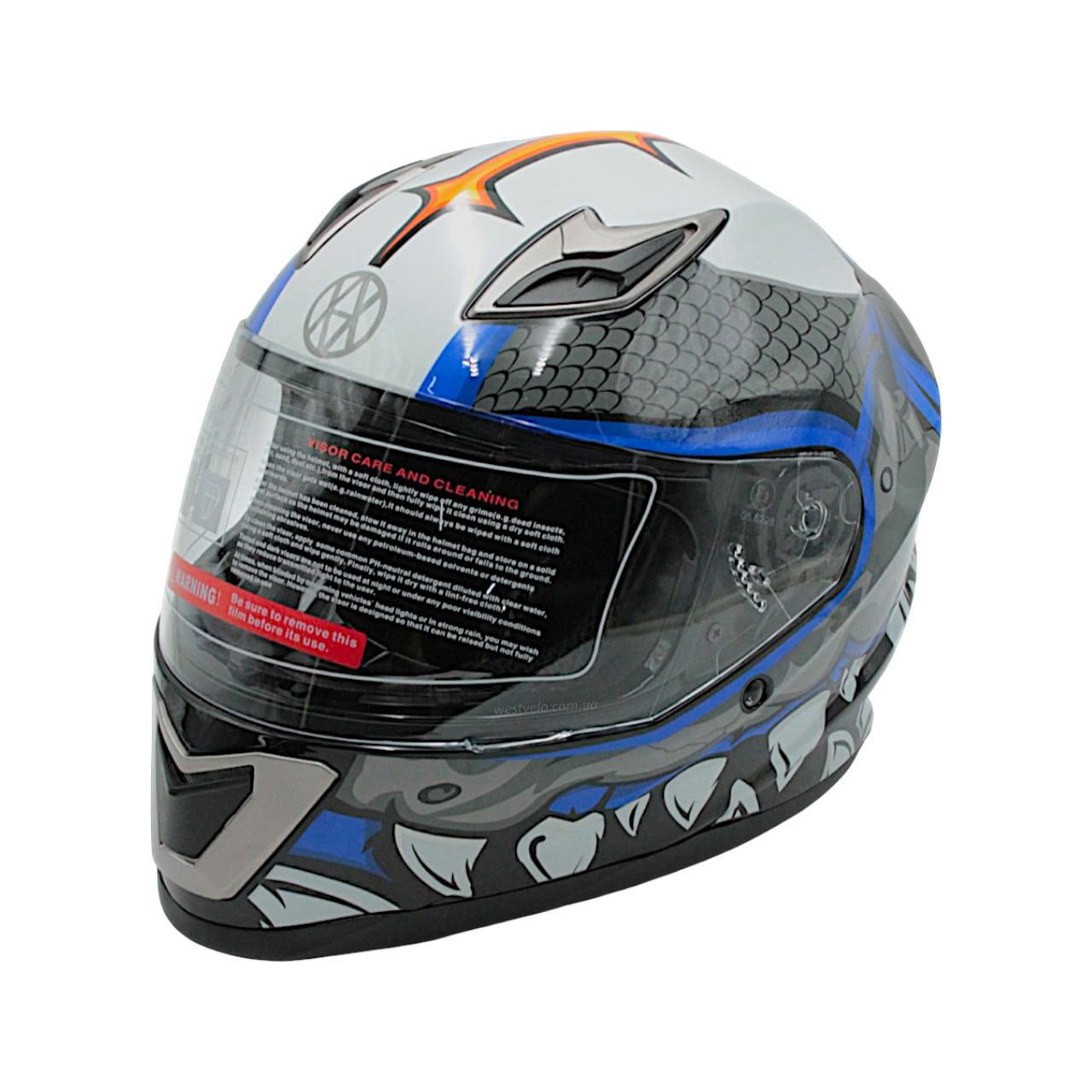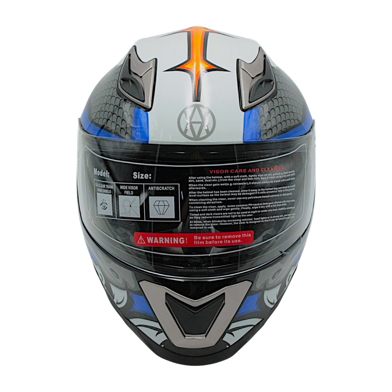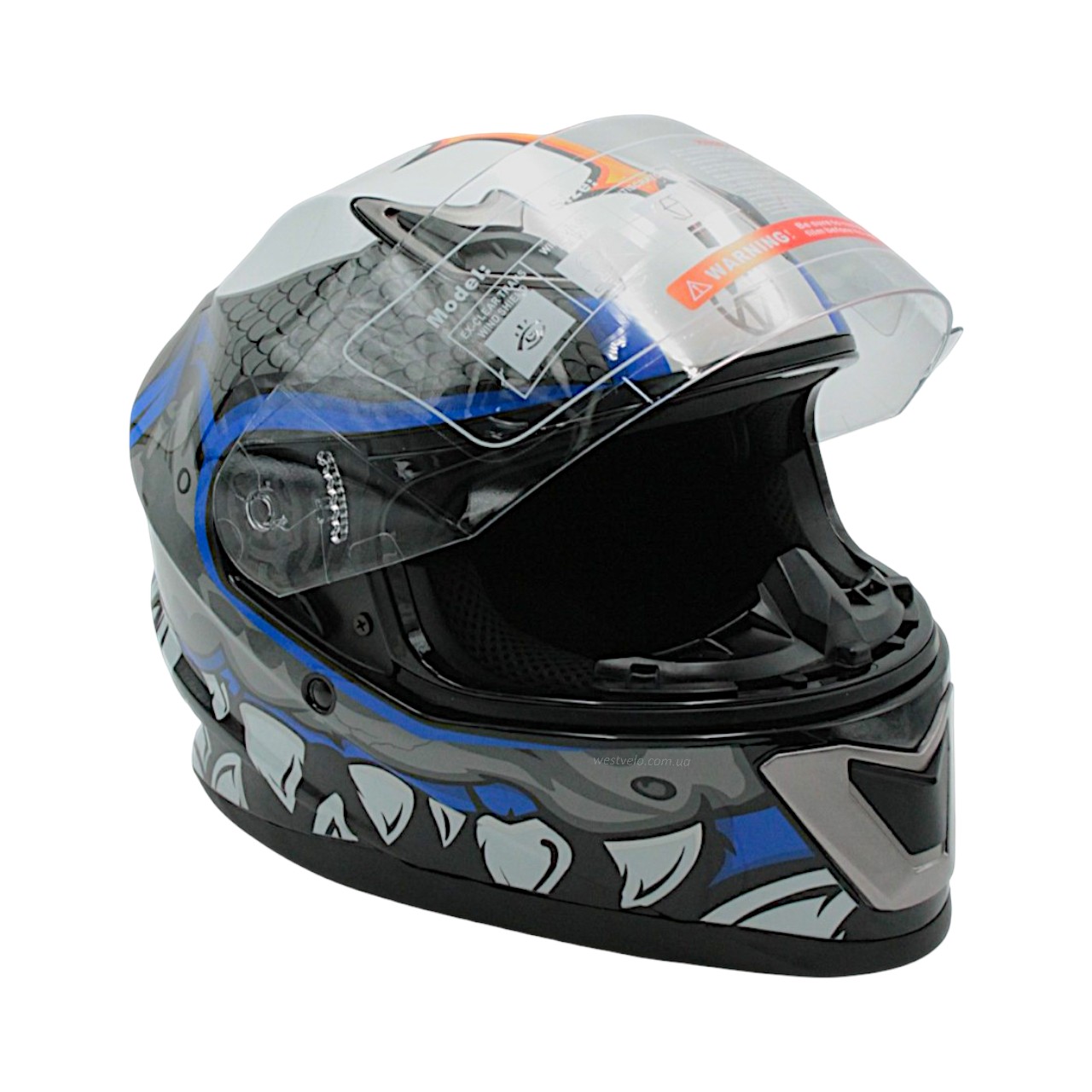 Мото шолом, закритий (L 59-60) VLAND M62-Dino, інтеграл, синій, глянцевий