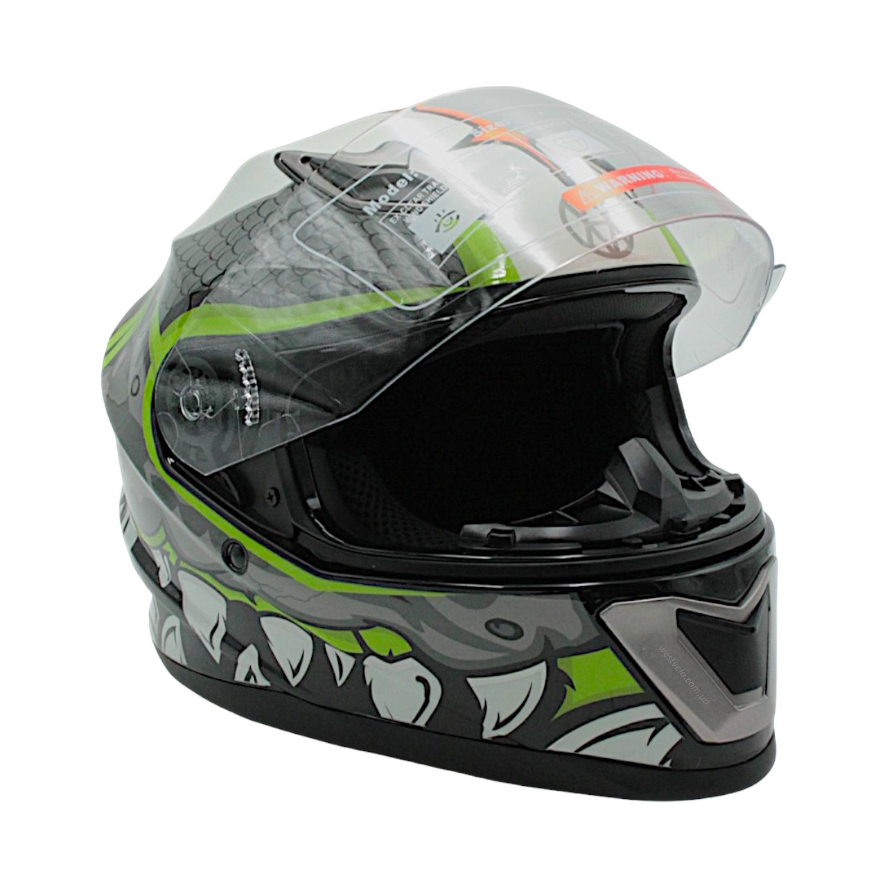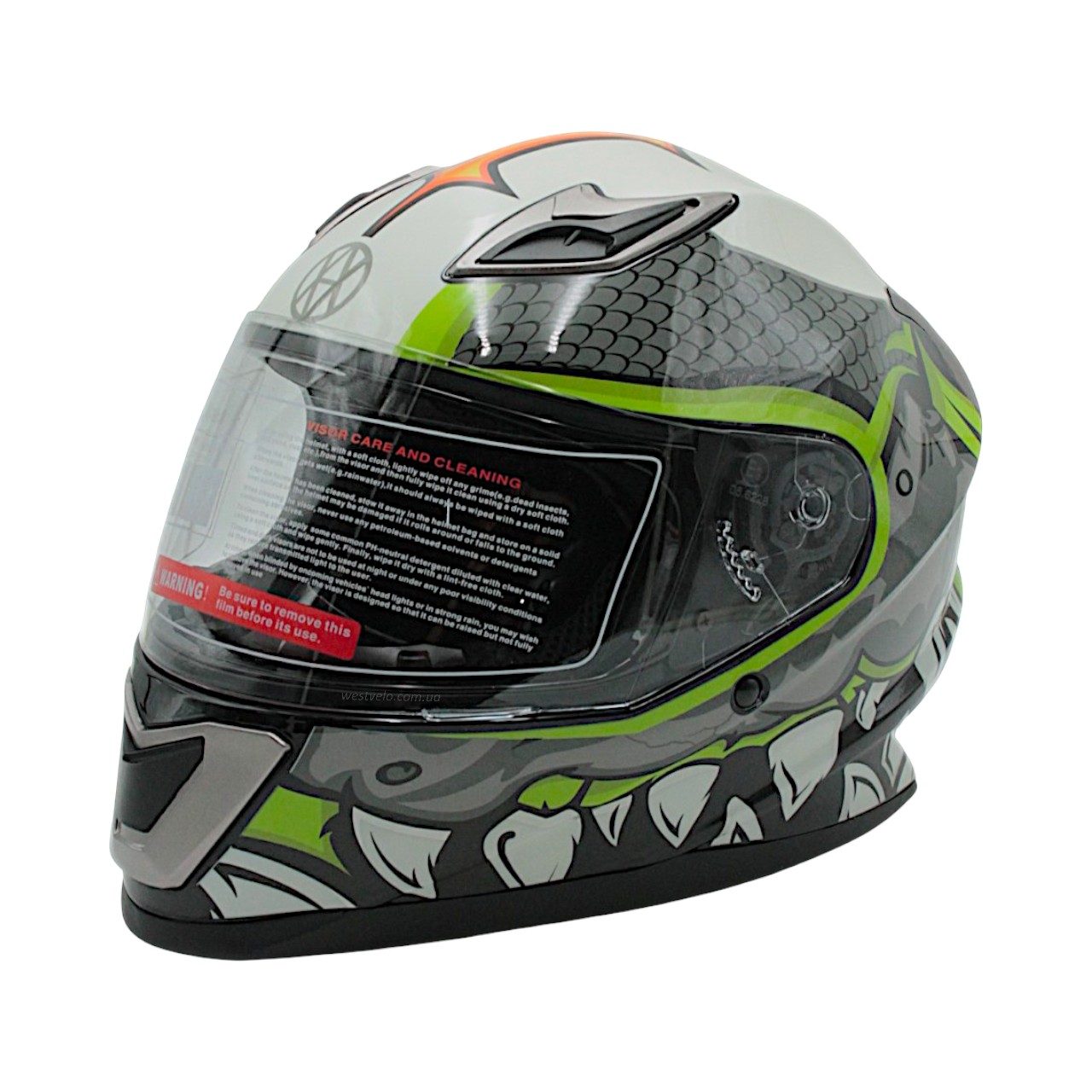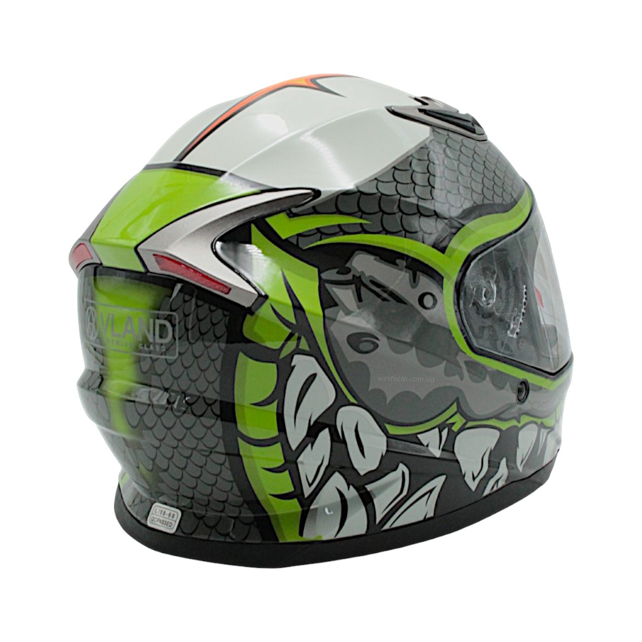 Мото шолом, закритий (L 59-60) VLAND M62-Dino, інтеграл, зелений, глянцевий