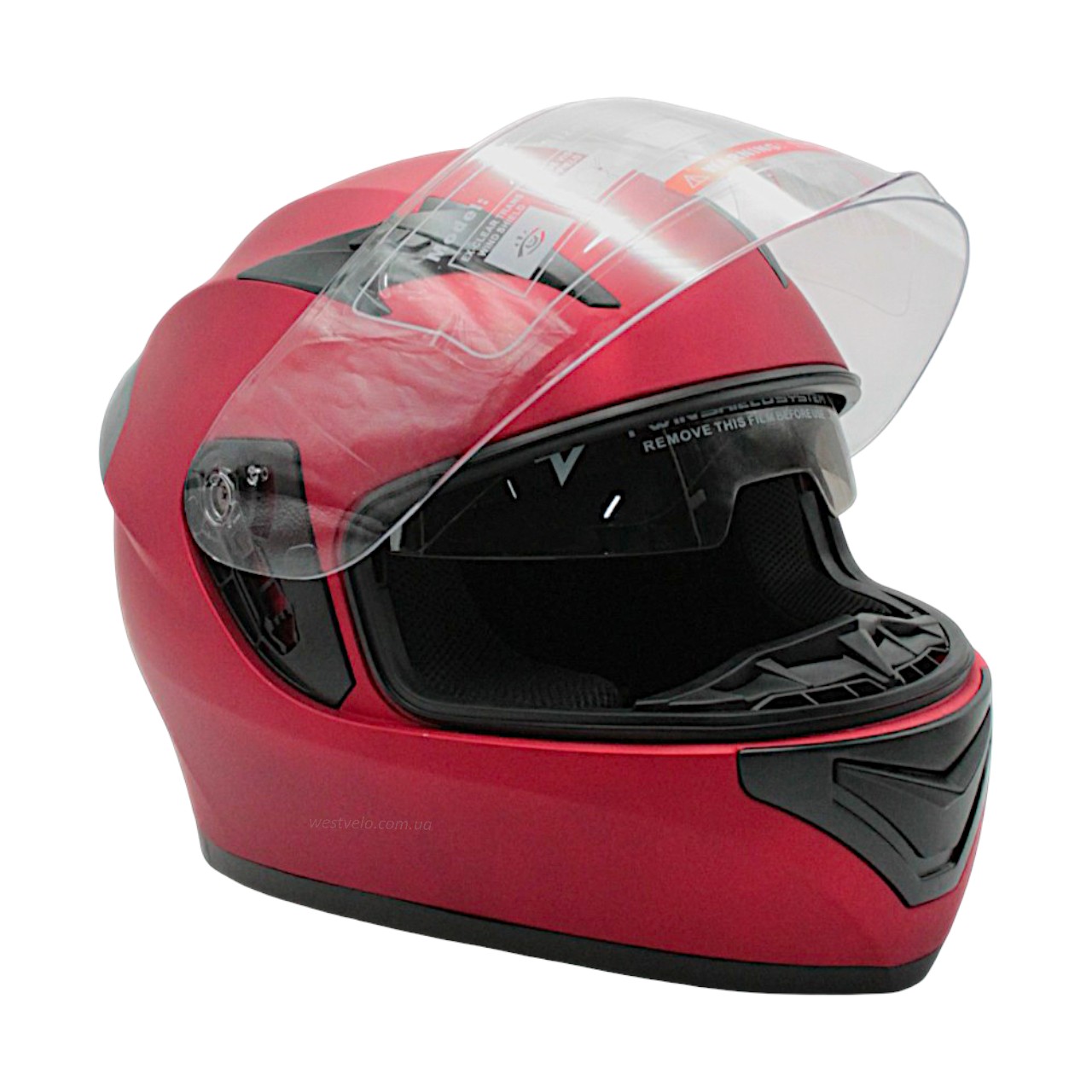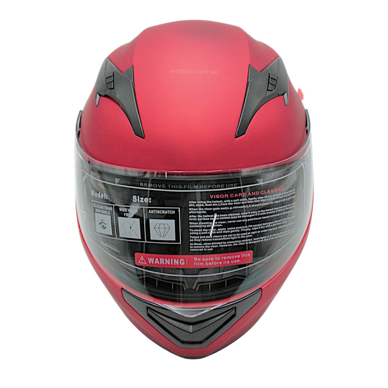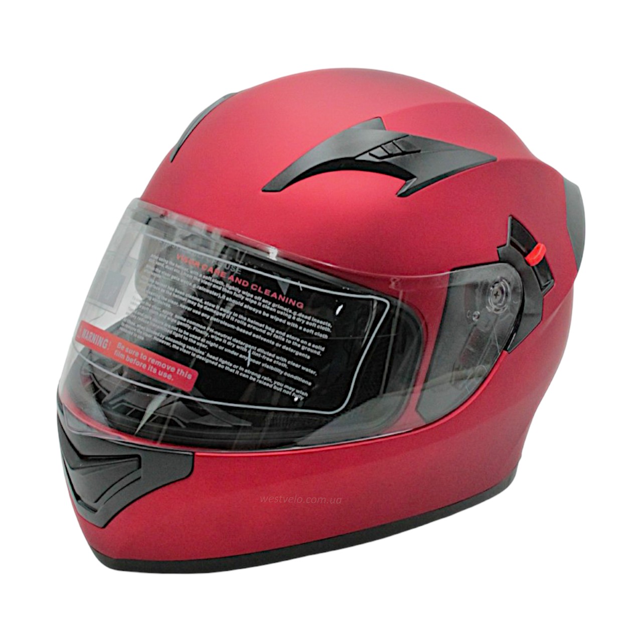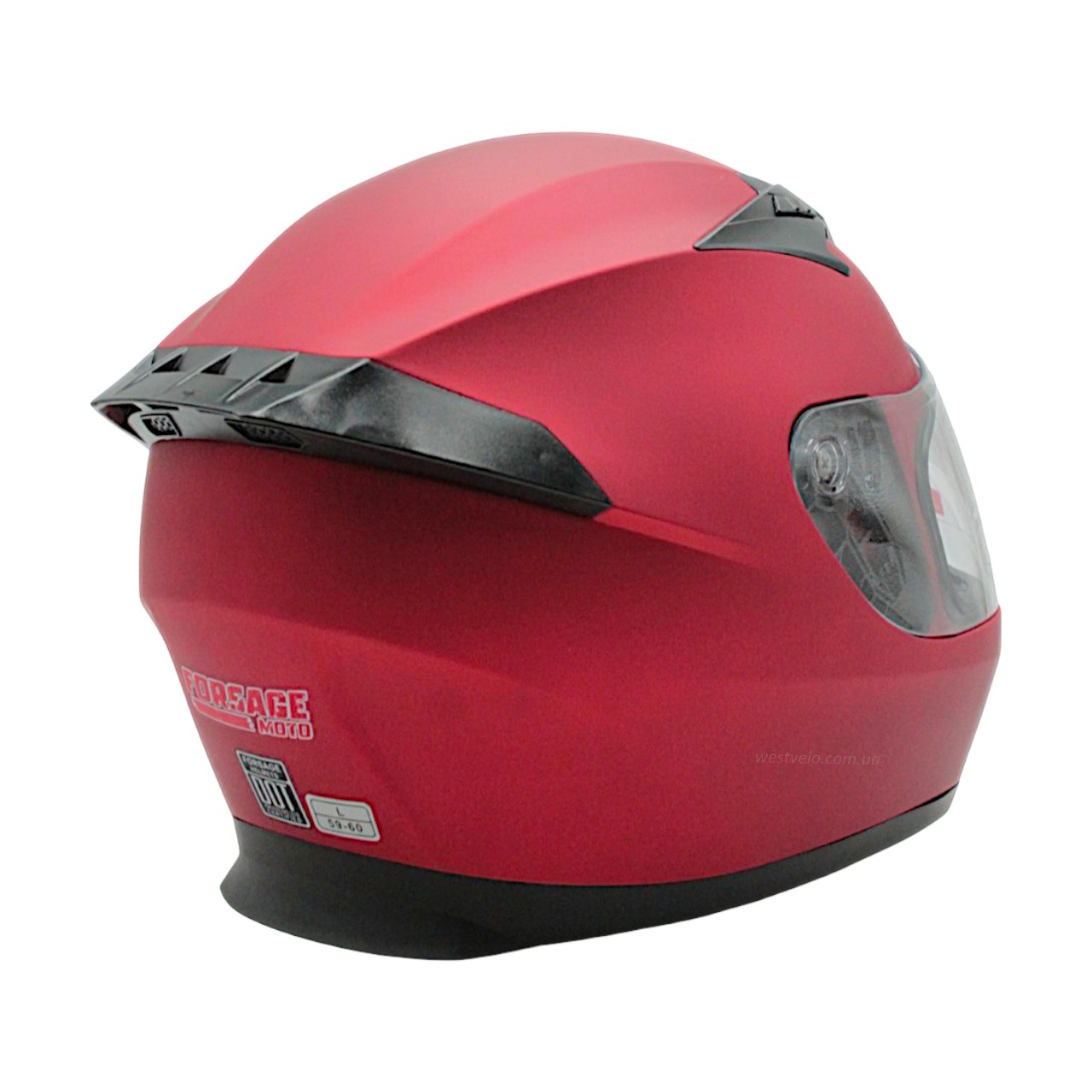 Мото шолом, закритий (L 59-60) "888-1" червоний, матовий, вмонтовані окуляри