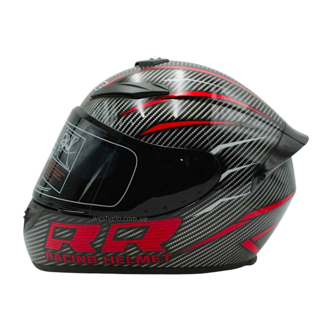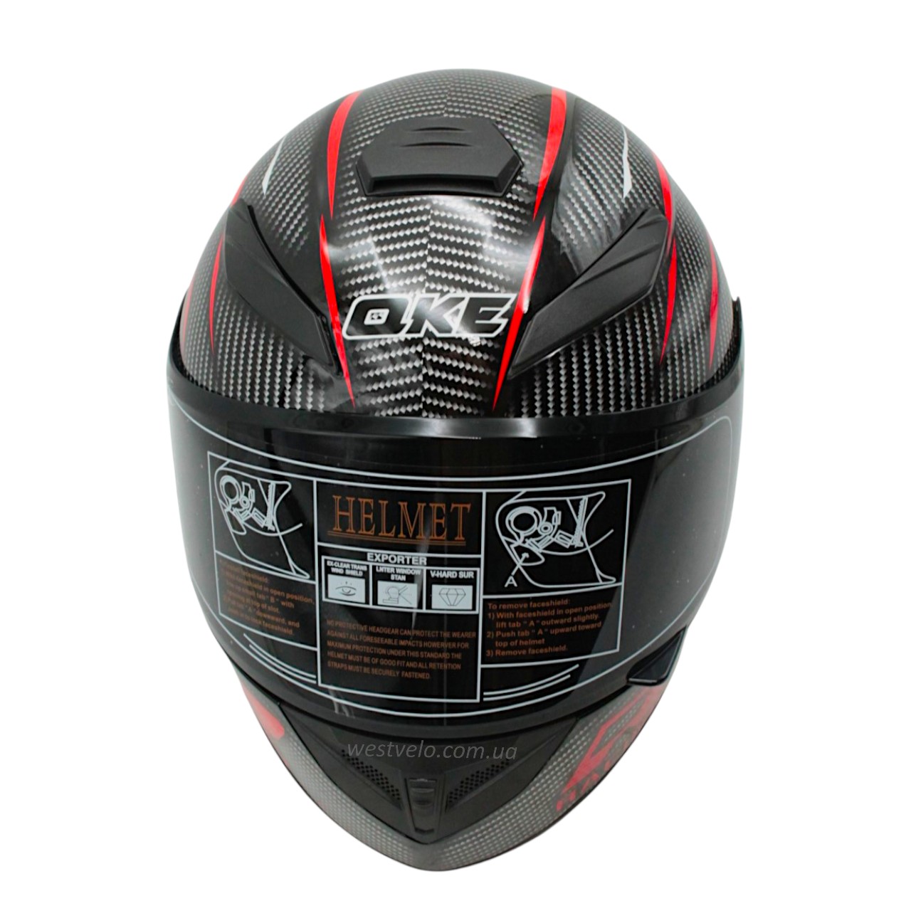 Мото шолом, закритий (L) QIKE HELMETS Dot "218" сіро-червоний, глянцевий "карбон"